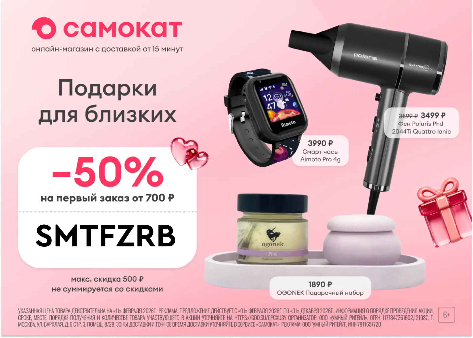 🔥 SMTFZRB — скидка 50% на первый заказ от 700 ₽ (максимум 500₽, не суммируется со скидками)