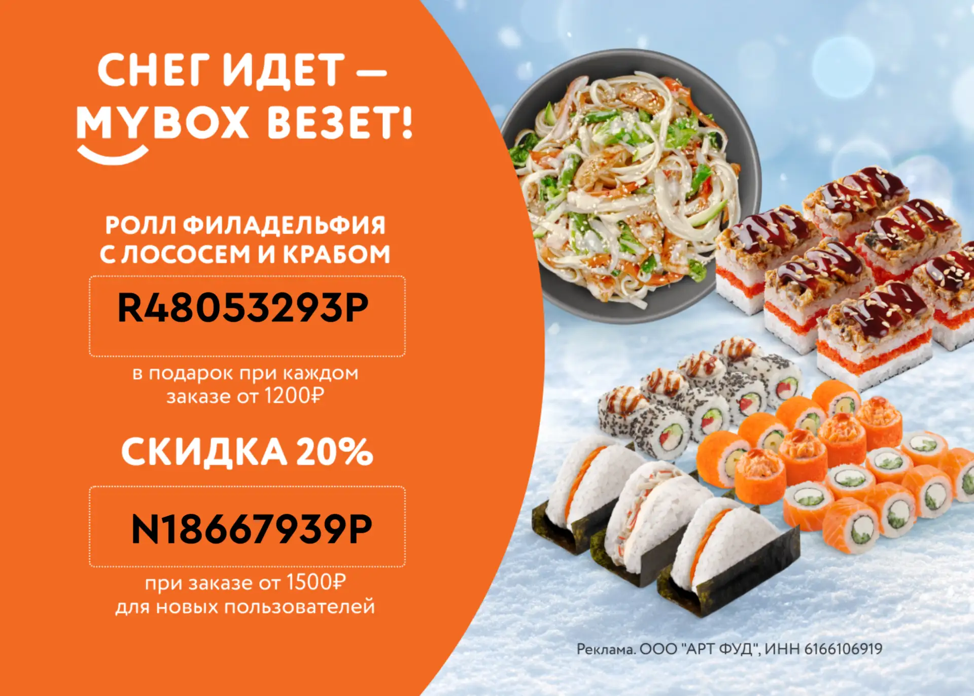 🍣 PFNEW1698 – Ролл Калифорния в подарок при каждом заказе от 3 999 ₽