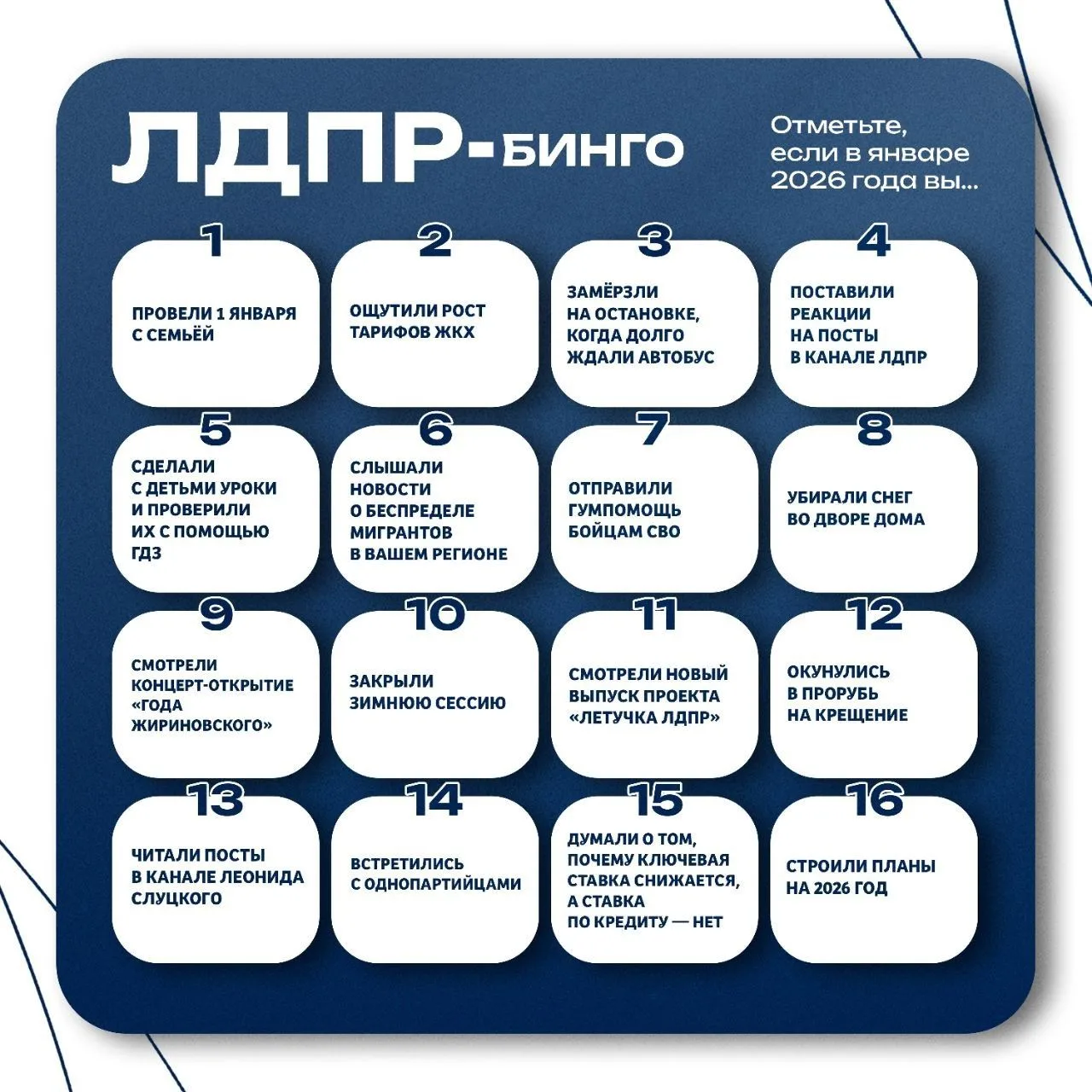 ❄️ Подводим итоги января вместе с бинго от ЛДПР!