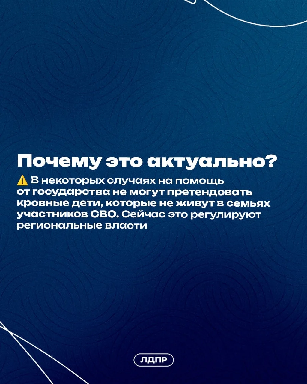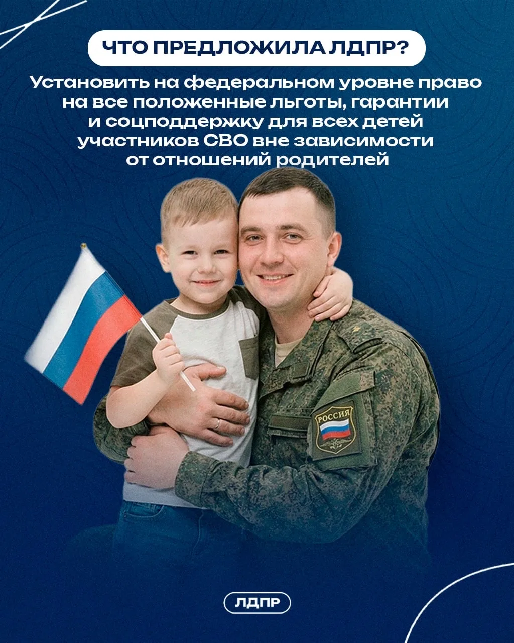 💬 Председатель ЛДПР настаивает: не важно, в каком регионе живёт воин, какие у него награды и где он защищал страну — в Анголе, Афганистане, на Кавказе, в зоне СВО. Нужен Единый федеральный стандарт по поддержке наших героев: статус ветерана, выплаты, льготы семьям — одинаковые по всей стране. Никаких «региональных правил» и «льгот по прописке»! Партия заставит бюрократов работать!