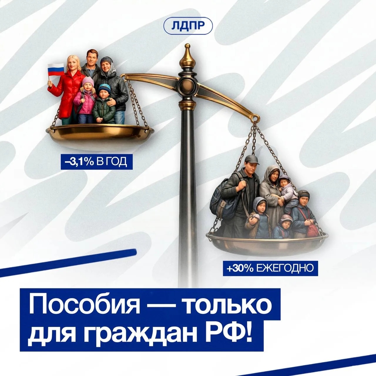 Хватит содержать тех, кто не вносит свой вклад в развитие нашей Родины! ЛДПР призывает направлять ресурсы в первую очередь на поддержку российских семей.