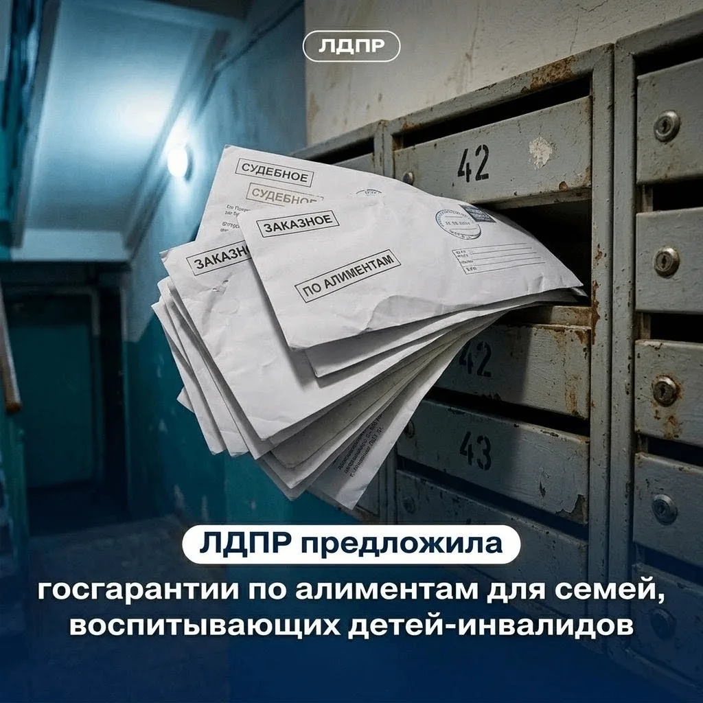 Лидер ЛДПР Леонид Слуцкий предложил создать механизм, при котором алименты детям-инвалидам будет выплачивать государство через специальный фонд или уполномоченный орган, если родитель уклоняется от своих обязанностей.