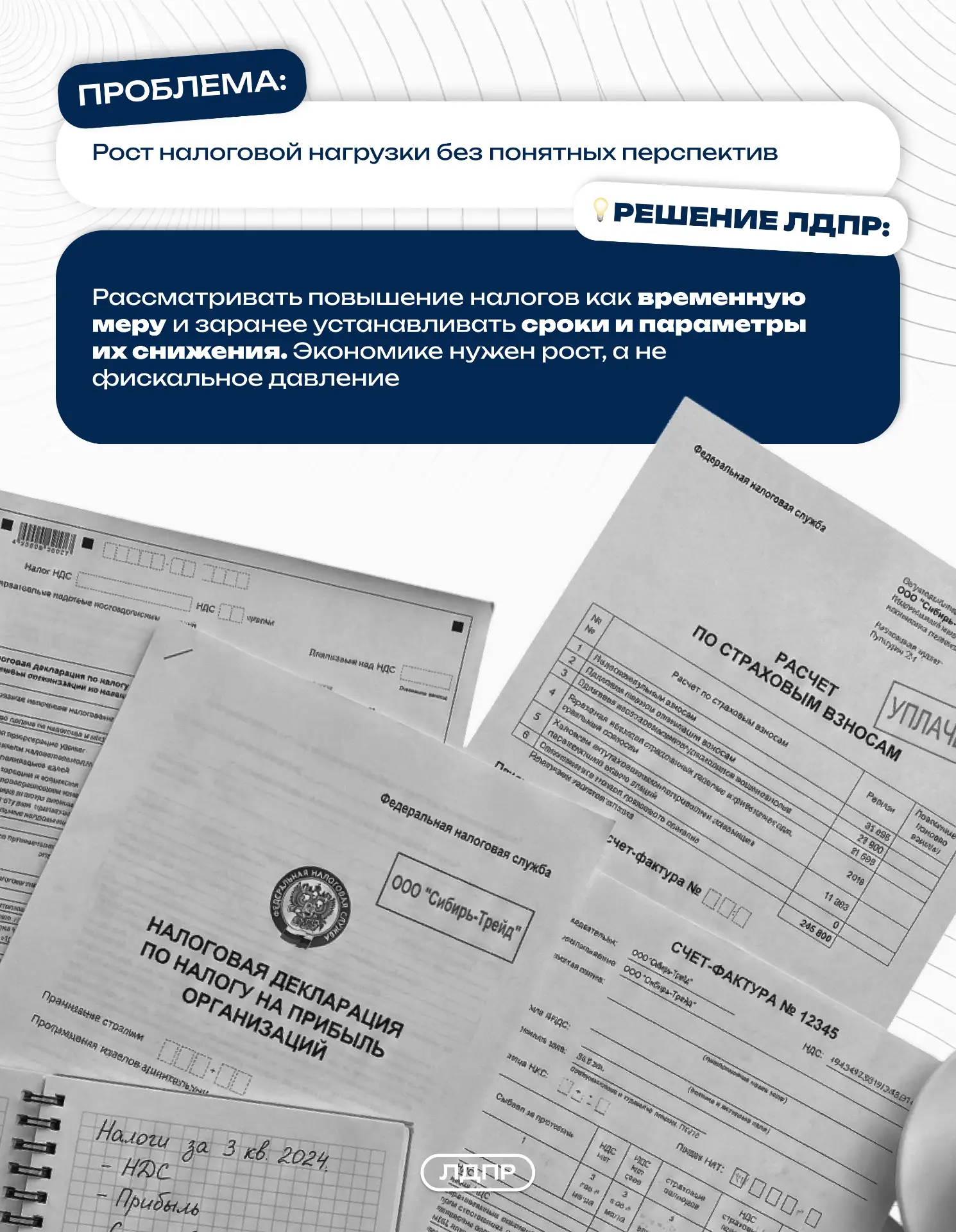 В своей статье «Бизнес: сохранить нельзя потерять» Председатель ЛДПР подчеркнул, что настоящий суверенитет — это благополучие граждан. Людям нужны гарантии, что их усилия будут вознаграждены — а значит, необходимо найти способы смягчить налоговую нагрузку там, где это возможно. Тогда экономическая среда станет более благоприятной для предпринимателей.