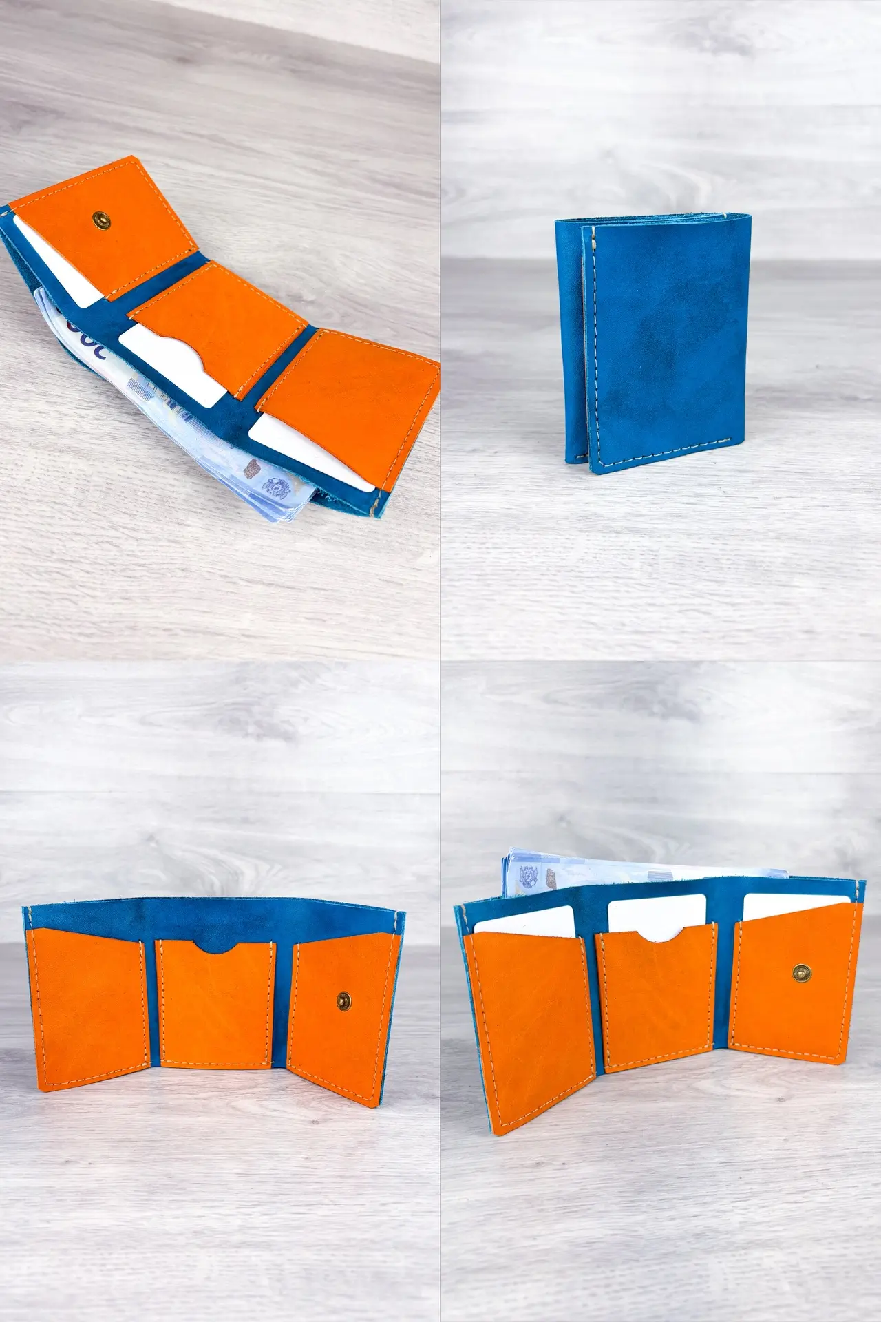 Трендовая модель кошелька трифолд, ценится за феноменальную компактность. Кошелек почти не занимает места, но при этом позволяет легко пересчитывать и доставать купюры.