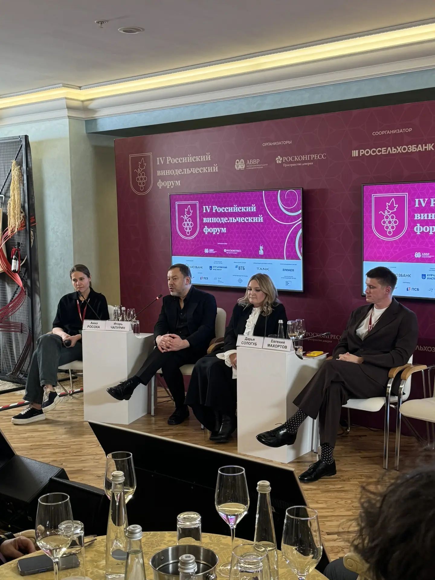 Спикерами выступили Евгений Махортов, партнер бренда LeGato, Дарья Сологуб, директор по международному маркетингу виноторговой компании «Форт», Игорь Чапурин, дизайнер, основатель модного дома Chapurin, а модератором выступила винный эксперт Анна Росоха.