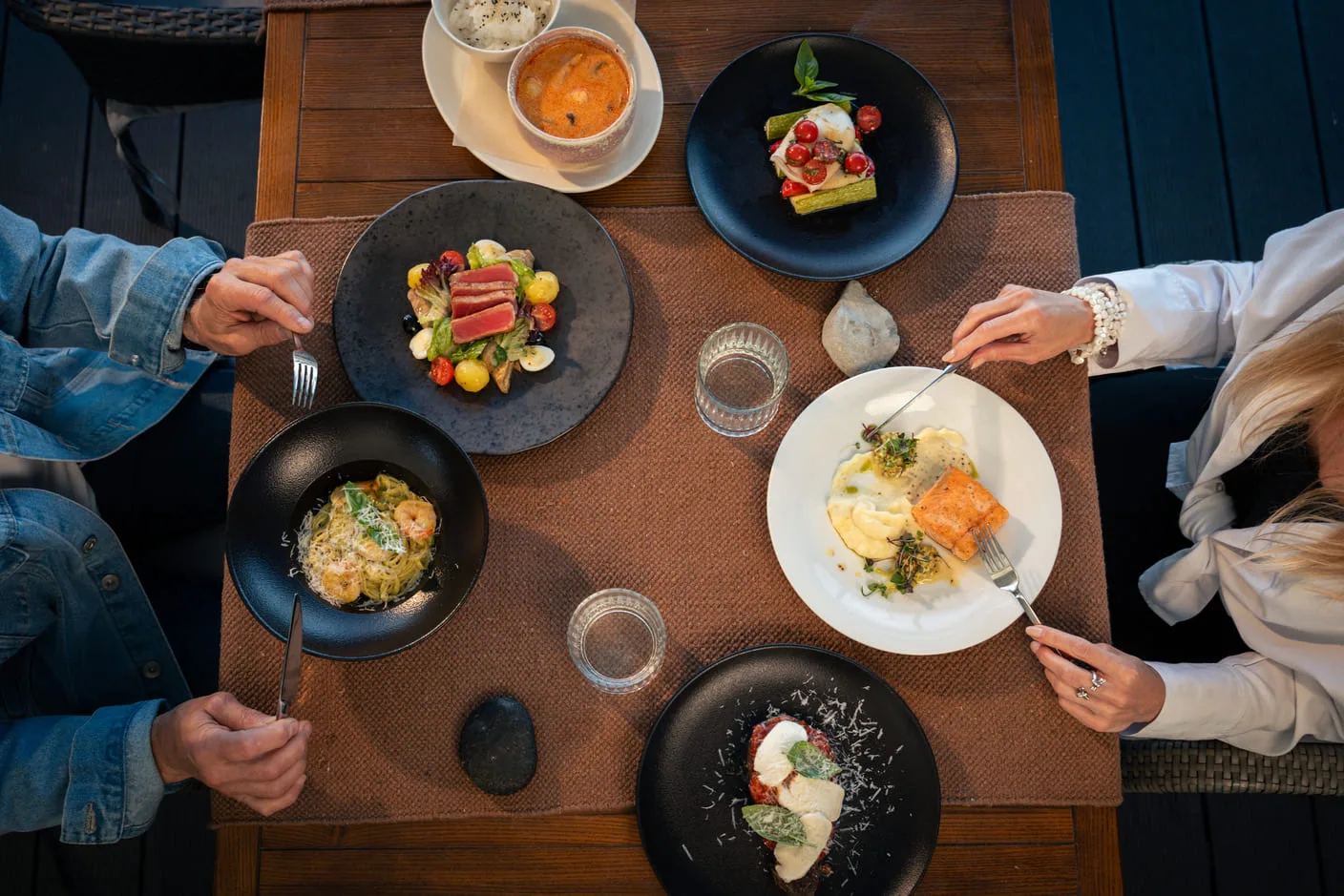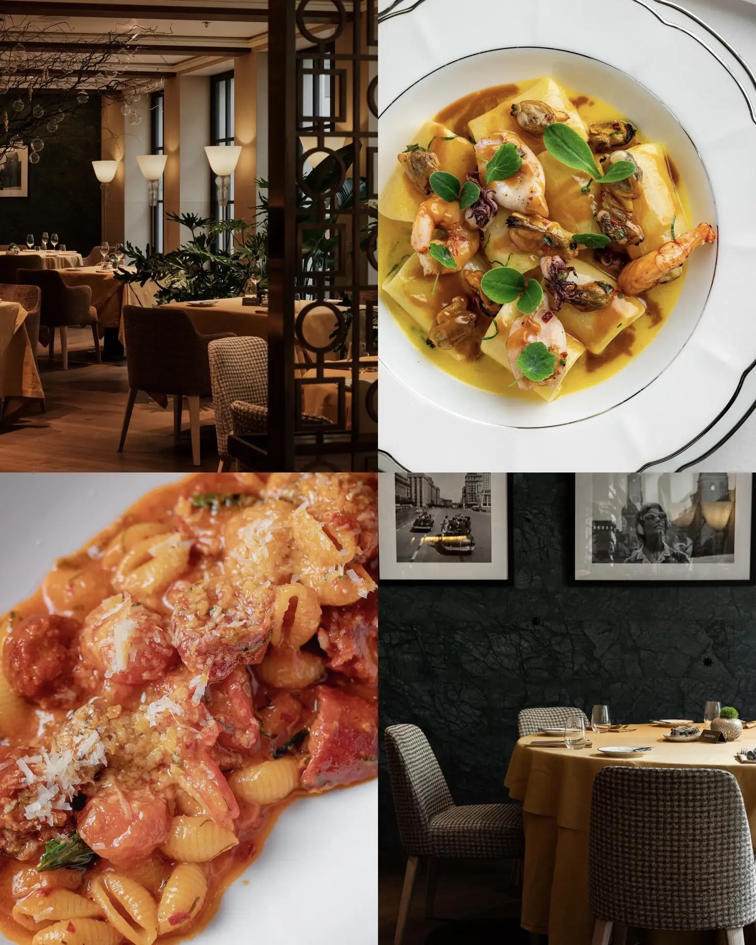 Авторская итальянская кухня шефа Мануэля Пизу соединяет сезонные продукты и современные интерпретации классики. Здесь каннеллони с говяжьими щечками и трюфелем соседствуют с диким сибасом и ежевикой, камчатским крабом по-каталонски и традиционным венецианским карпаччо.