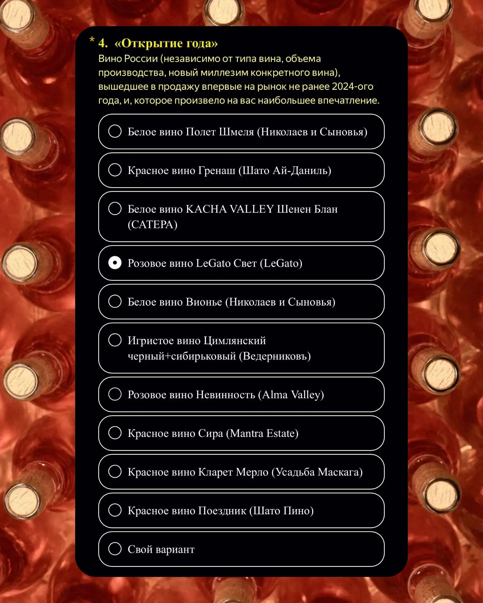 Этот ежегодный рейтинг объединяет экспертов, виноделов и ценителей, отмечая тех, кто задаёт тон и формирует культуру современного российского вина.