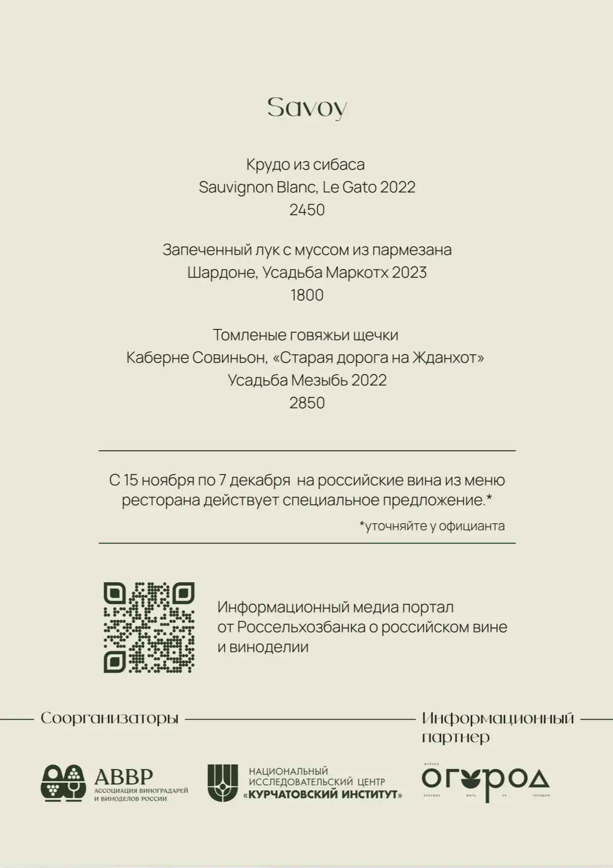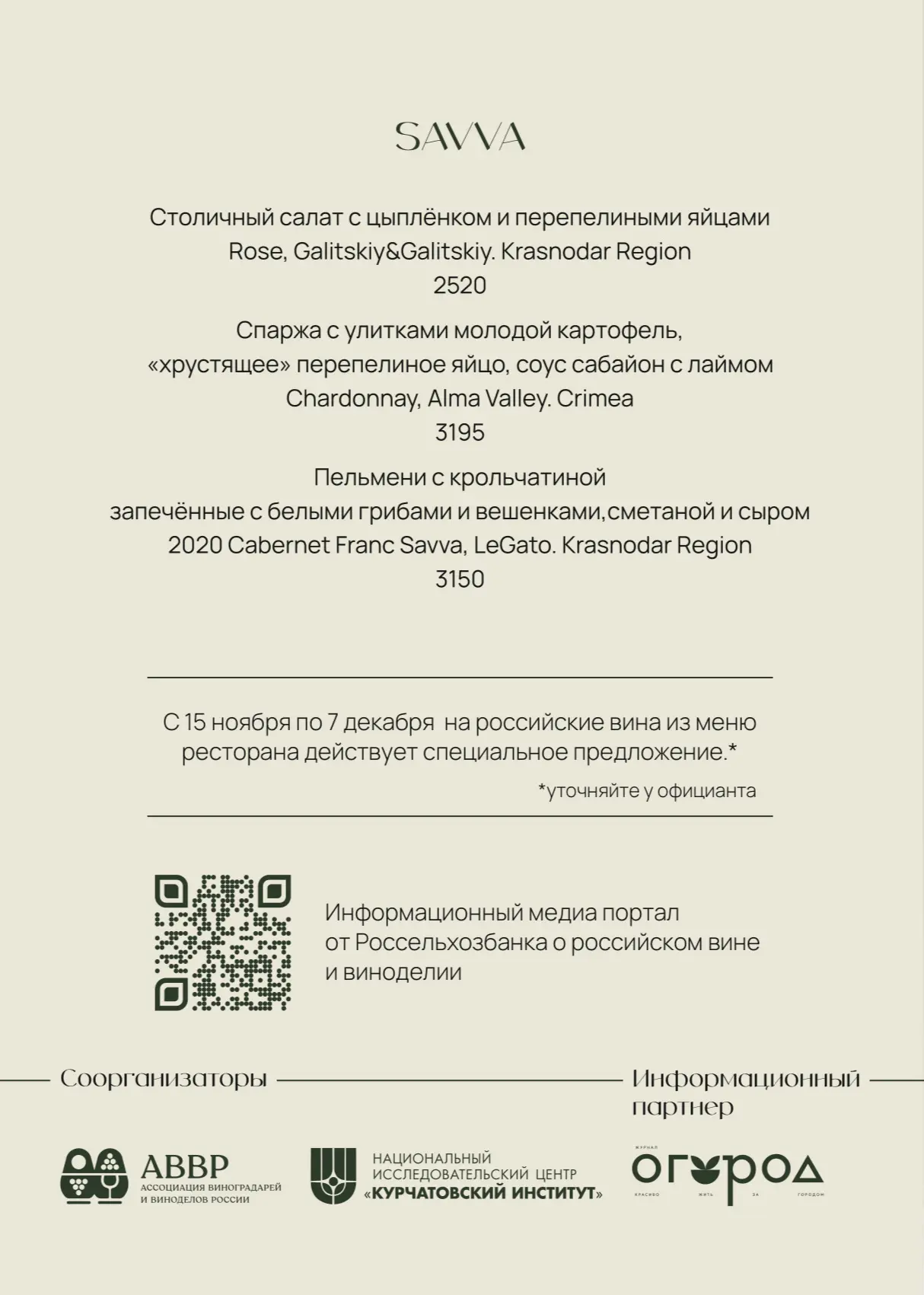 Сегодня в Savva стартует специальное сет-меню, приуроченое к Винодельческому форуму, и мы рады быть его частью.