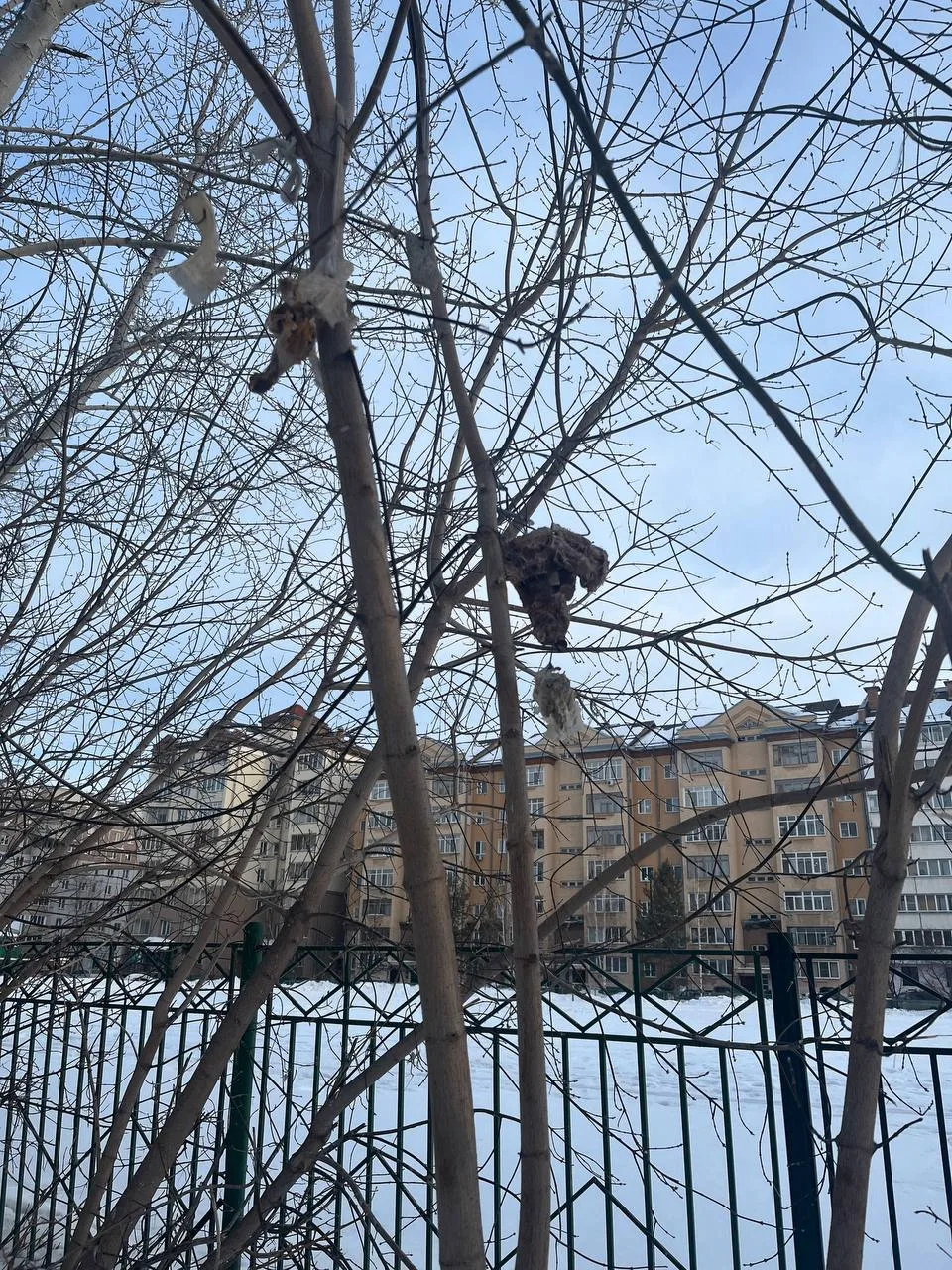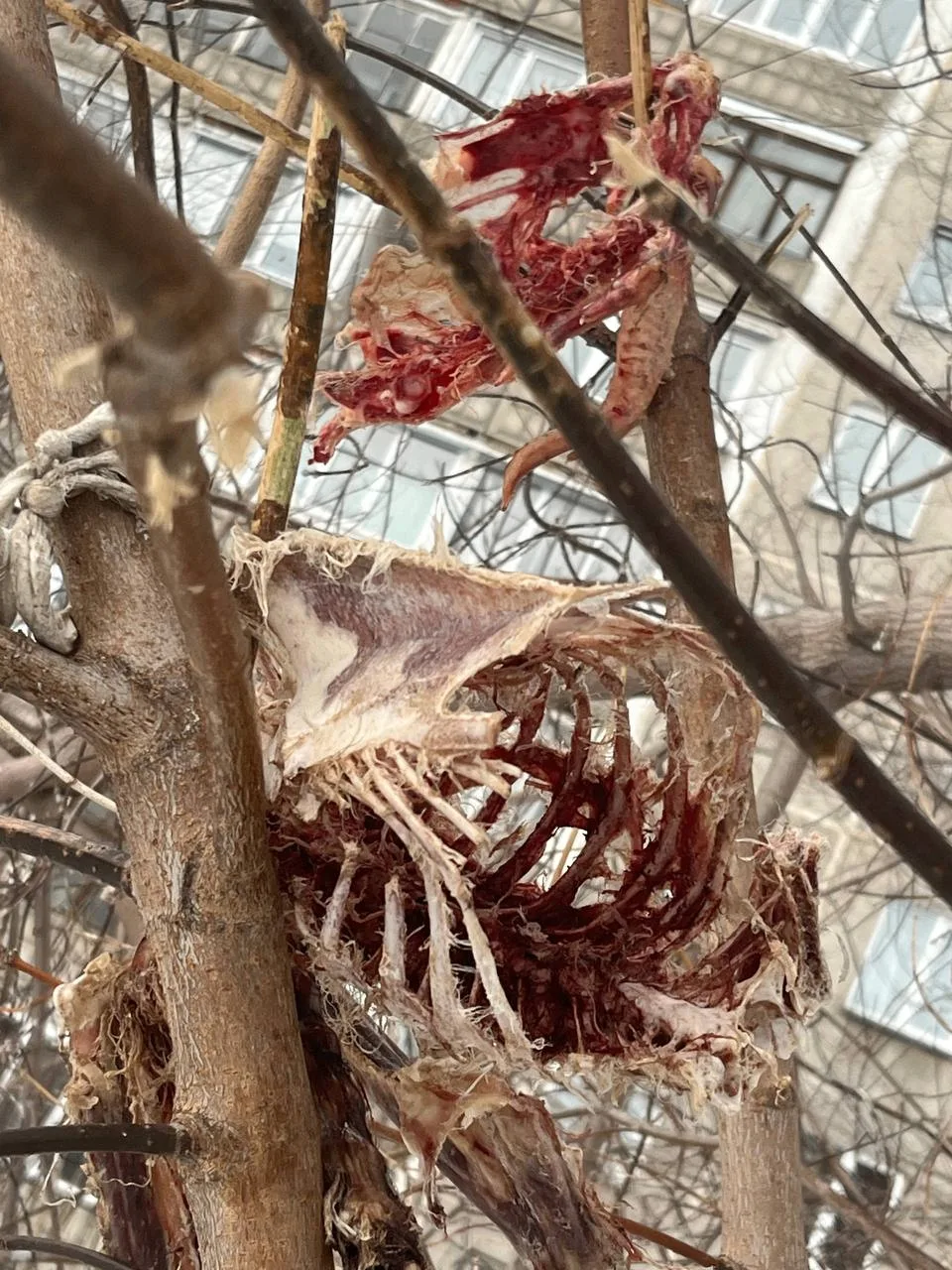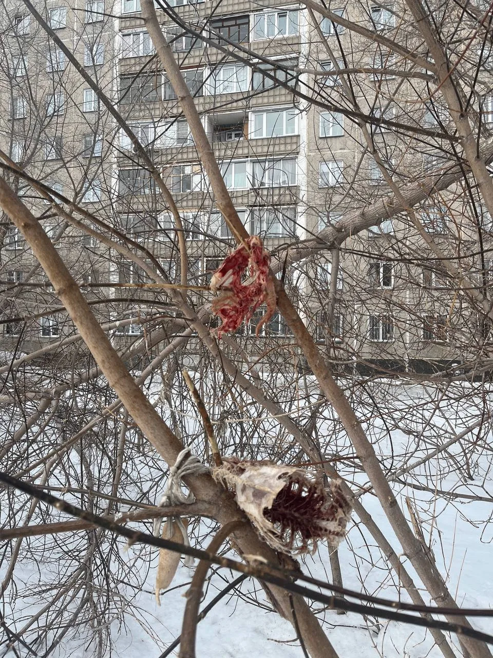 В Ленинском районе подвесили останки животных на улице Киевской возле 28 дома🤨