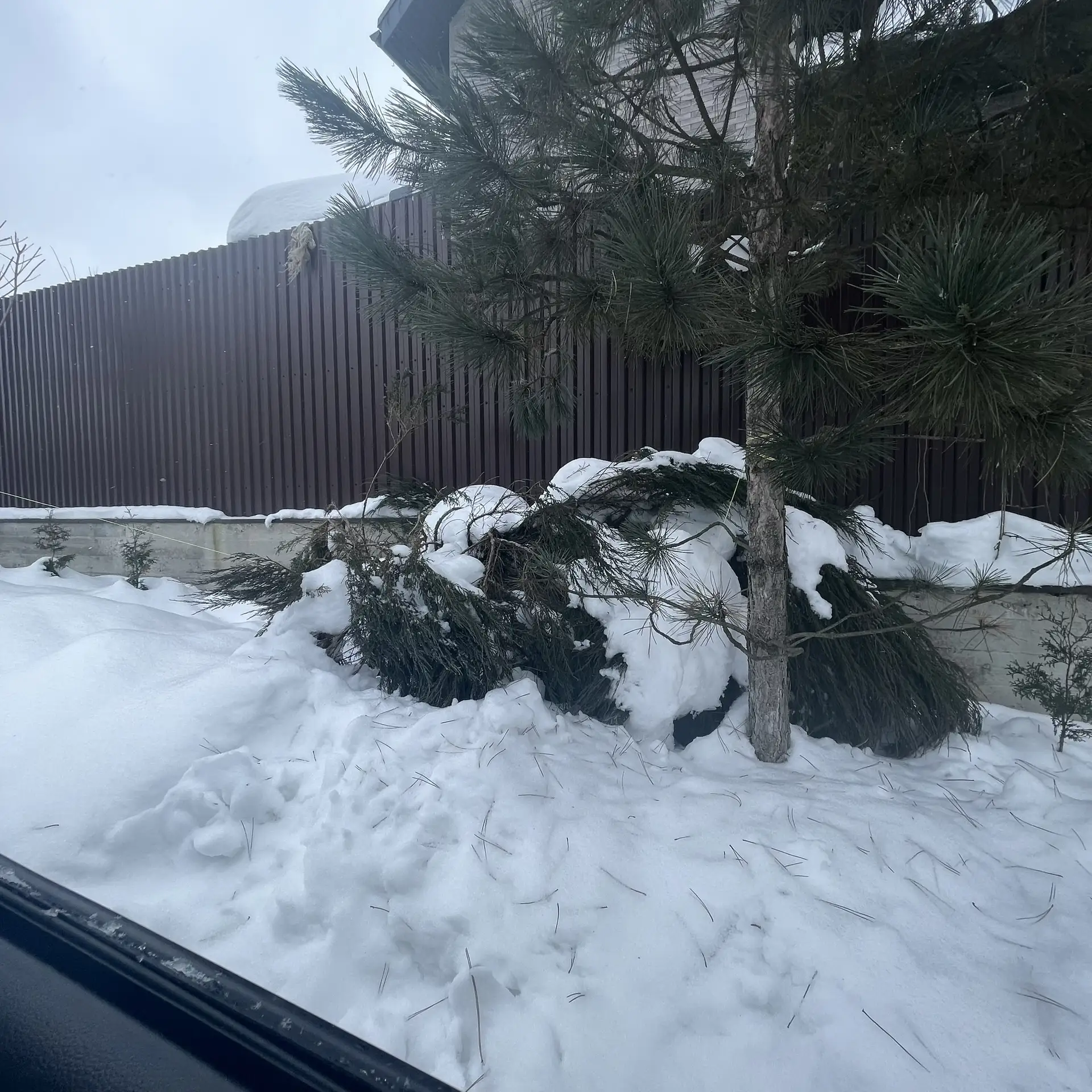 Проследила, не доглядела…. Можжевельник прилег. Не факт что очухается. Пока не трогаем мороз. Я не люблю скальные можжевельники они очень гибкие и ломкие