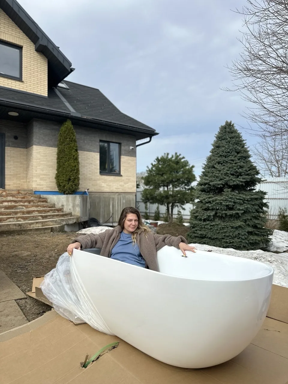 Все штамбовые растения нужно очищать от сугробов. Пришла спасать свою лиственницу. На самом деле она выше меня, но снега столько, что я выше ее.