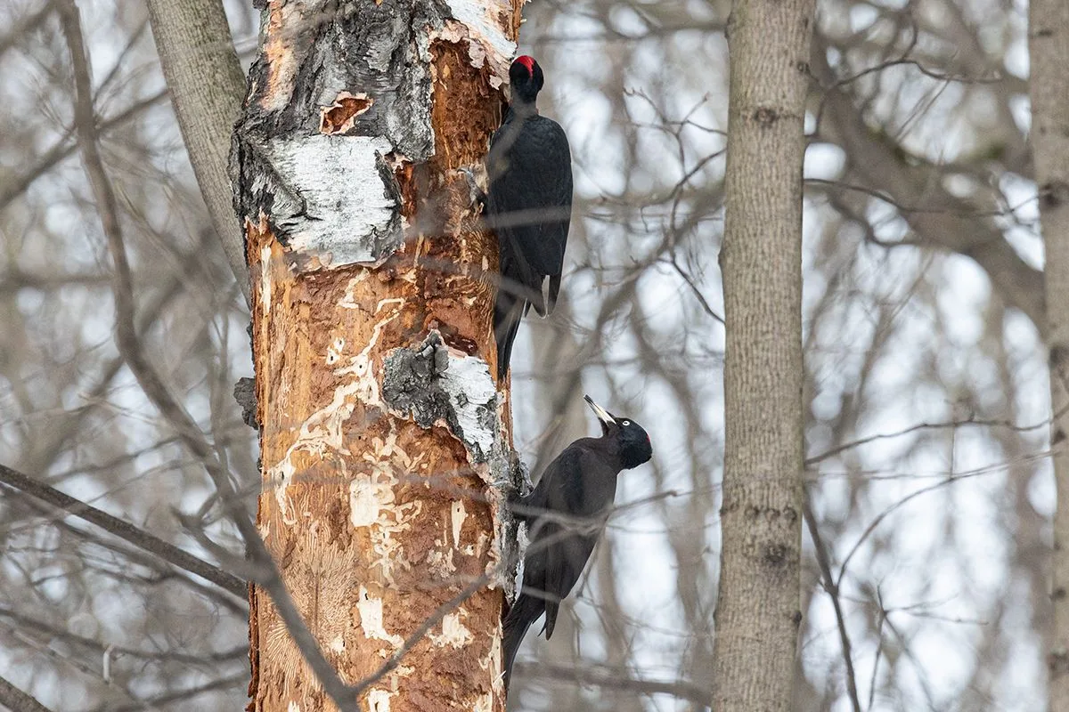 Сразу на входе встретили пару желн - самца и самку. Впервые увидели сразу двух птиц на одном дереве.