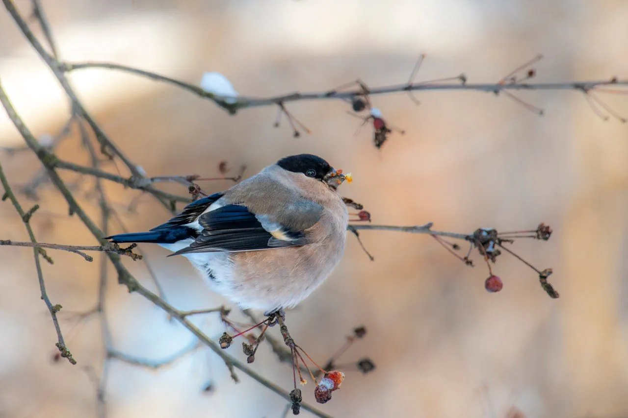 Снегирь обыкновенный. Уже в парках слышны их голоса. Скоро эти красные шарики появятся на всех кормушках.