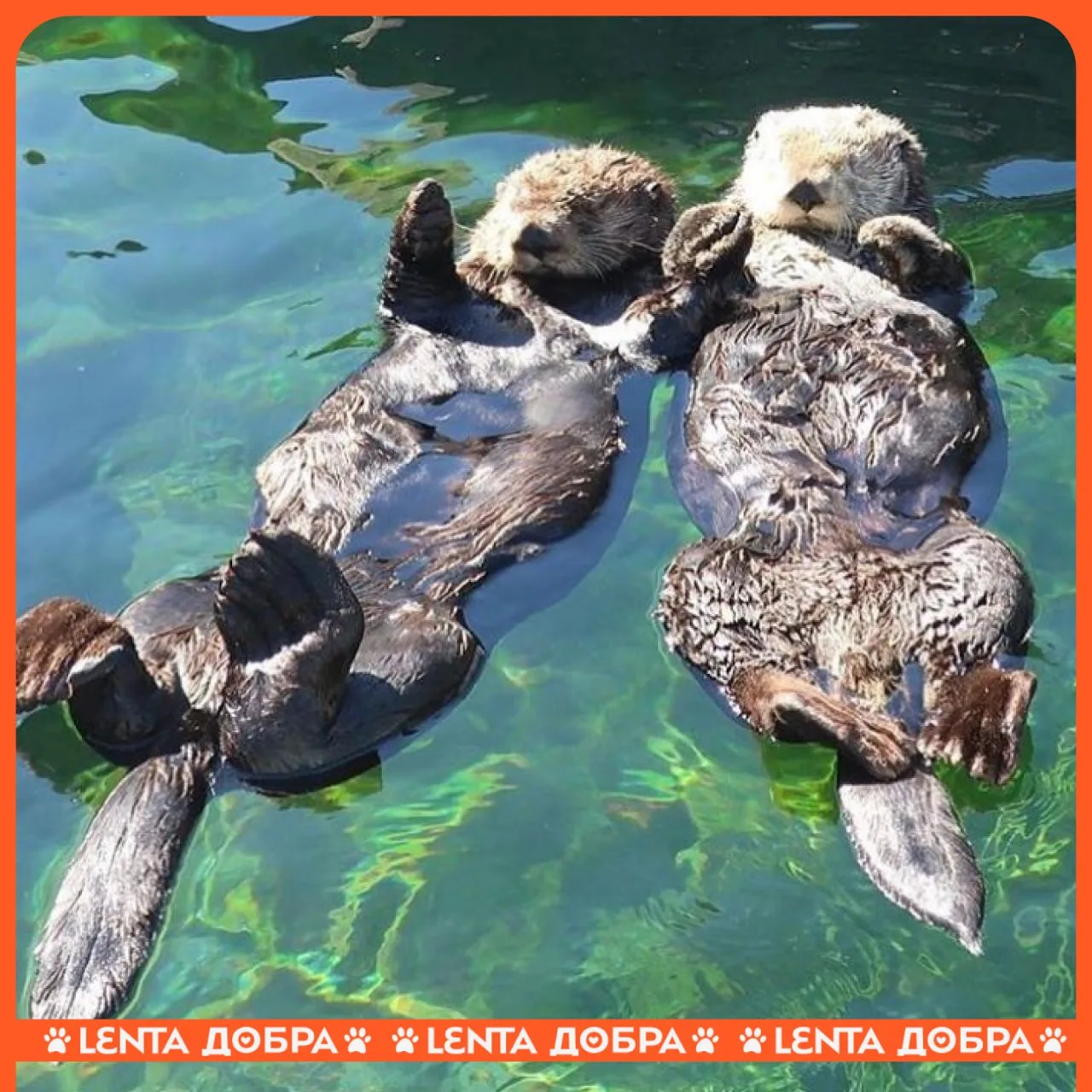 😌 В этой жизни хочется только одного — спокойствия и умиротворения, как у морских выдр, качающихся на волнах.