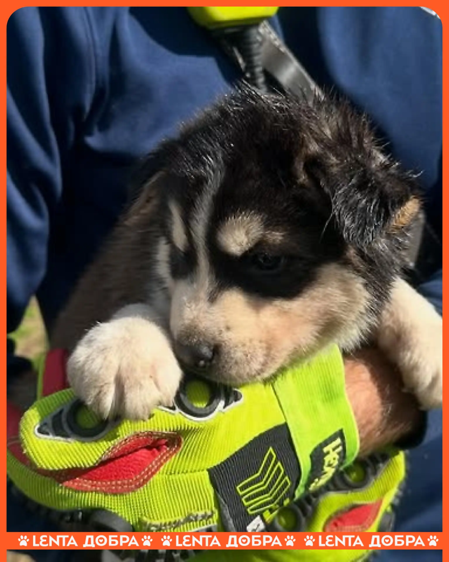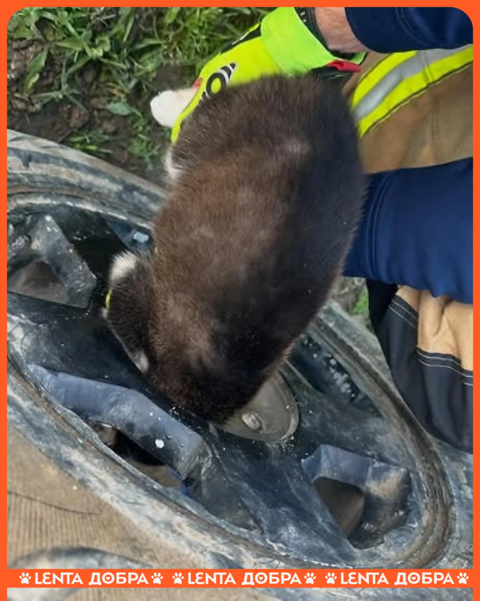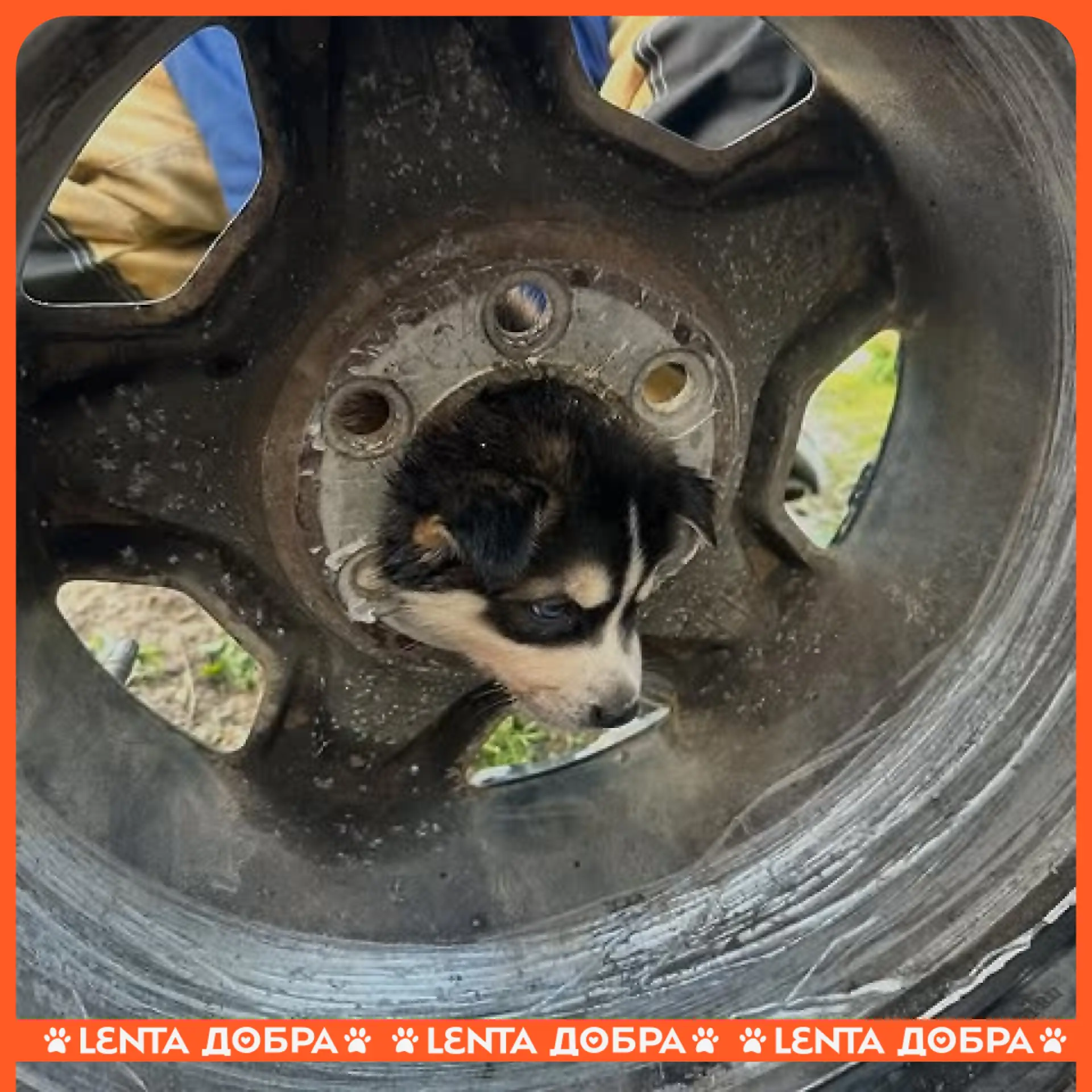 😌 Спасателям пришлось выручать щенка, голова которого застряла в диске от автомобиля.