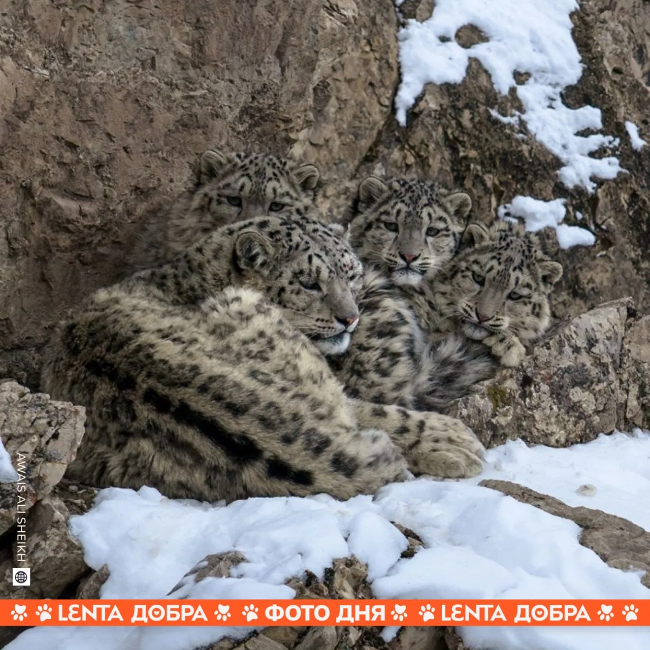 📸 Фото дня: Семью снежных барсов удалось запечатлеть в естественной среде обитания.