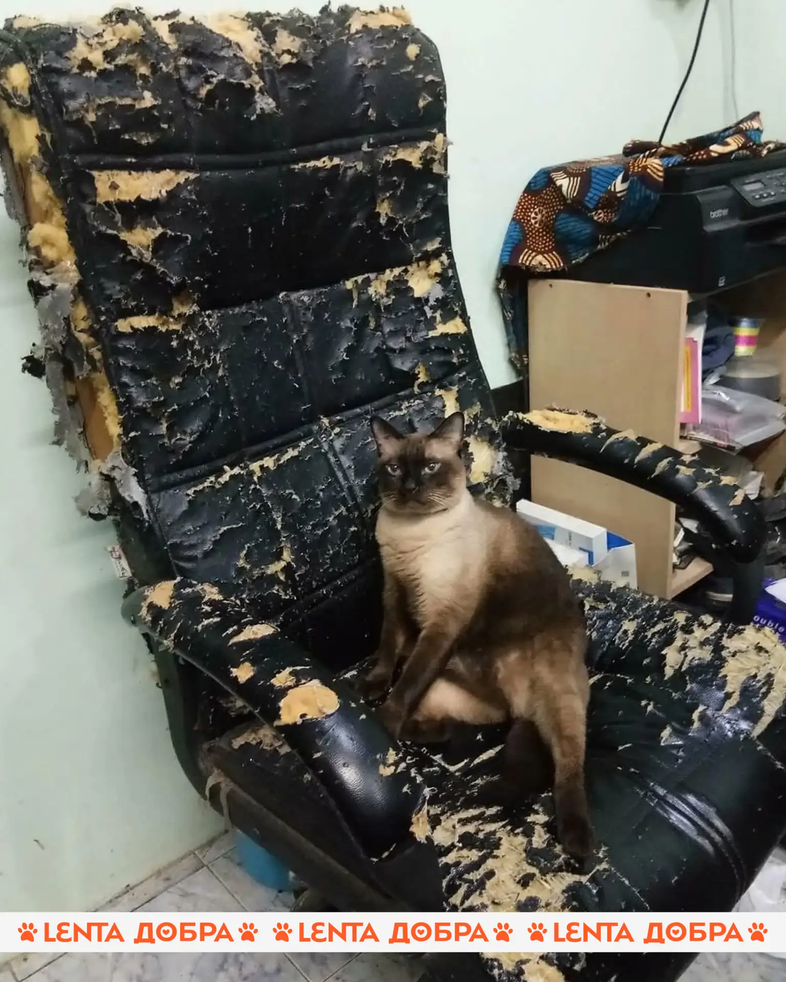Хвостатая просто пришла к девушке, которая держит кошачий приют, и отказалась уходить. Так что теперь она помогает ей заботиться об усатых постояльцах.
