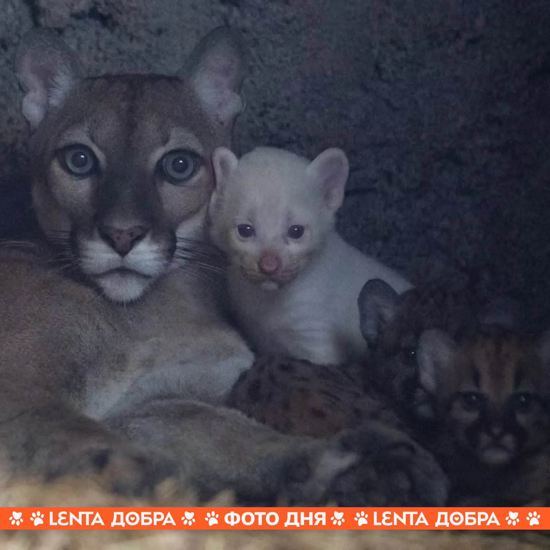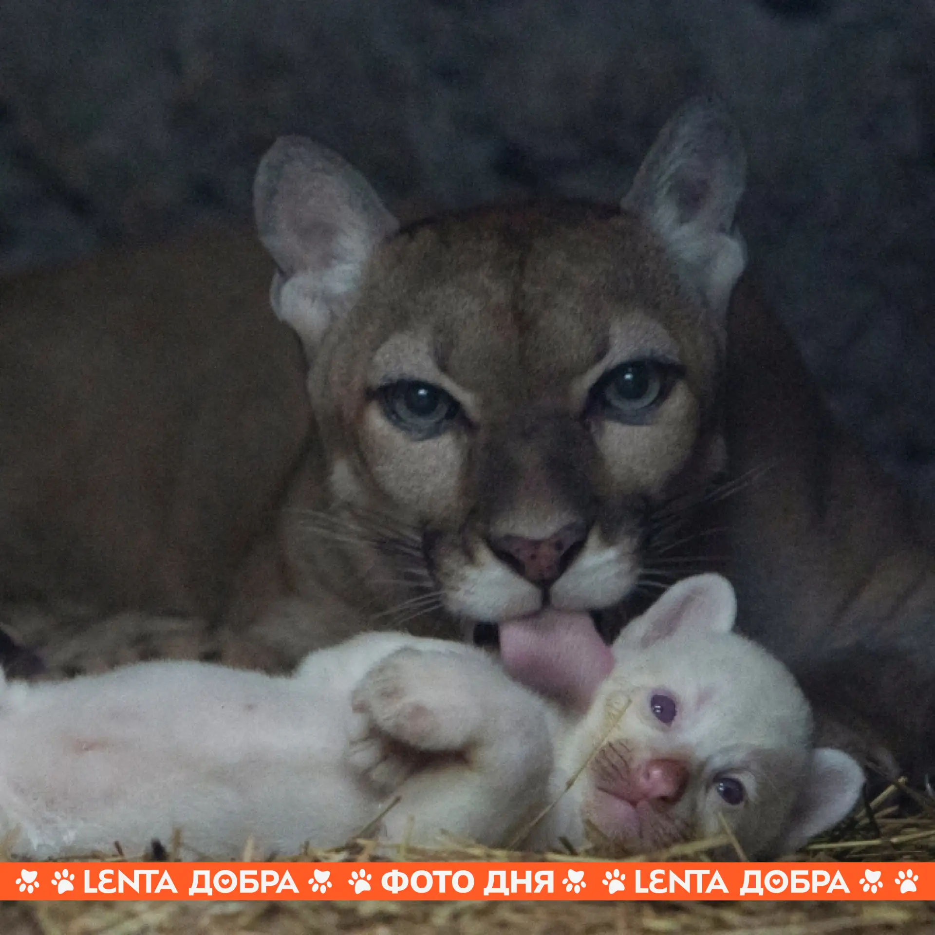 😍 Фото дня: мама-пума и её детёныш-альбинос