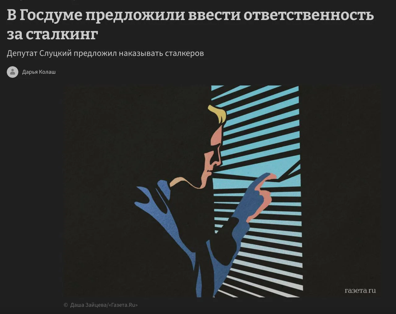 Автор инициативы отметил, что преследованием часто занимаются не посторонние, а бывшие партнёры или знакомые. Законодательной базы для наказания таких действий пока нет — это планируют исправить.