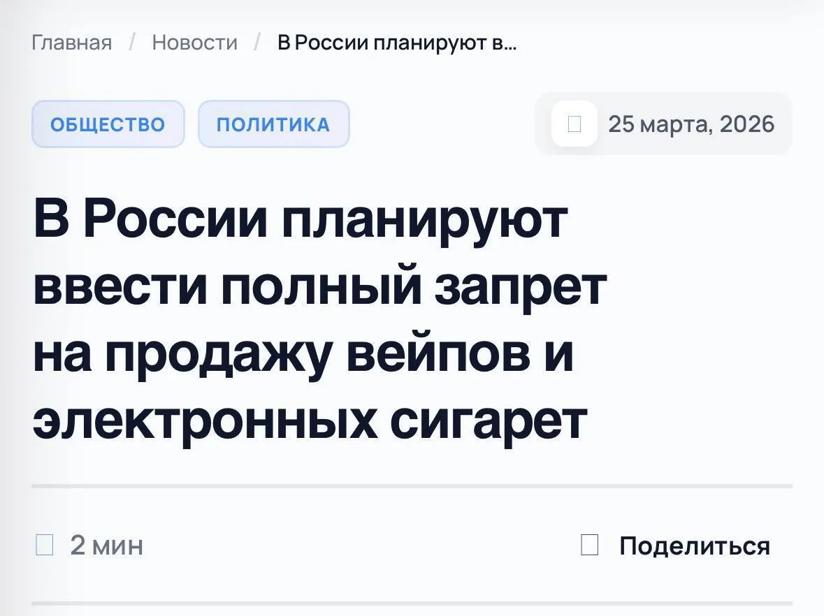 🚭 В России полностью запретят вейпы, жидкости и электронные сигареты.