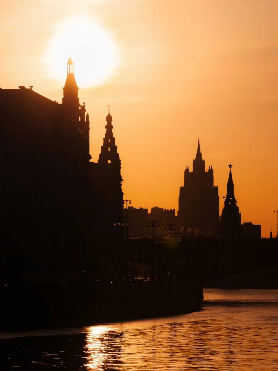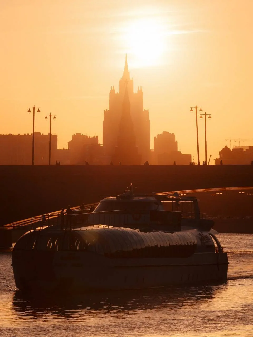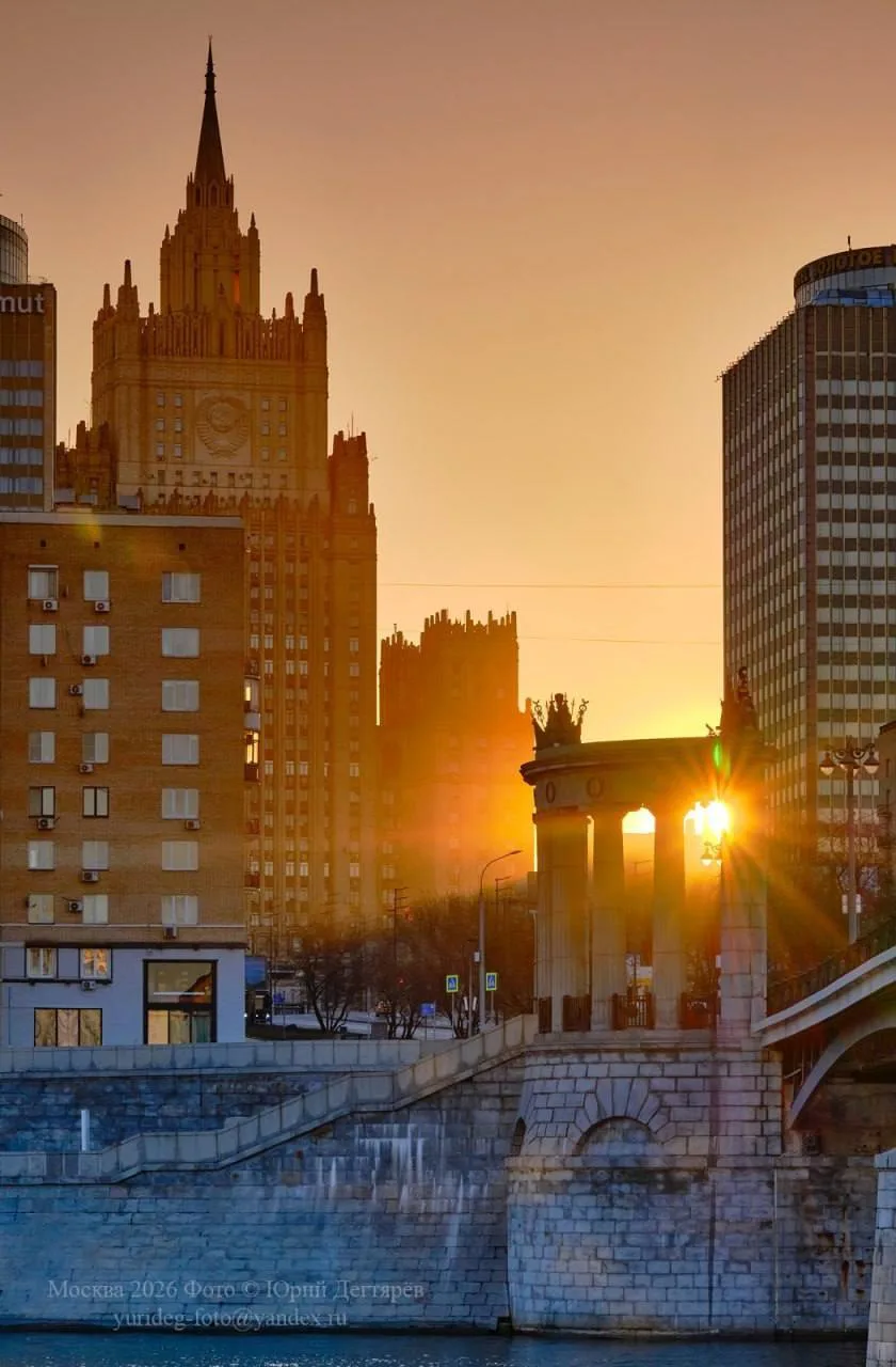 🌅 Первые лучи солнца у Бородинского моста — утренние часы в Москве особенно атмосферные. Фото: Юрий Дегтярев.