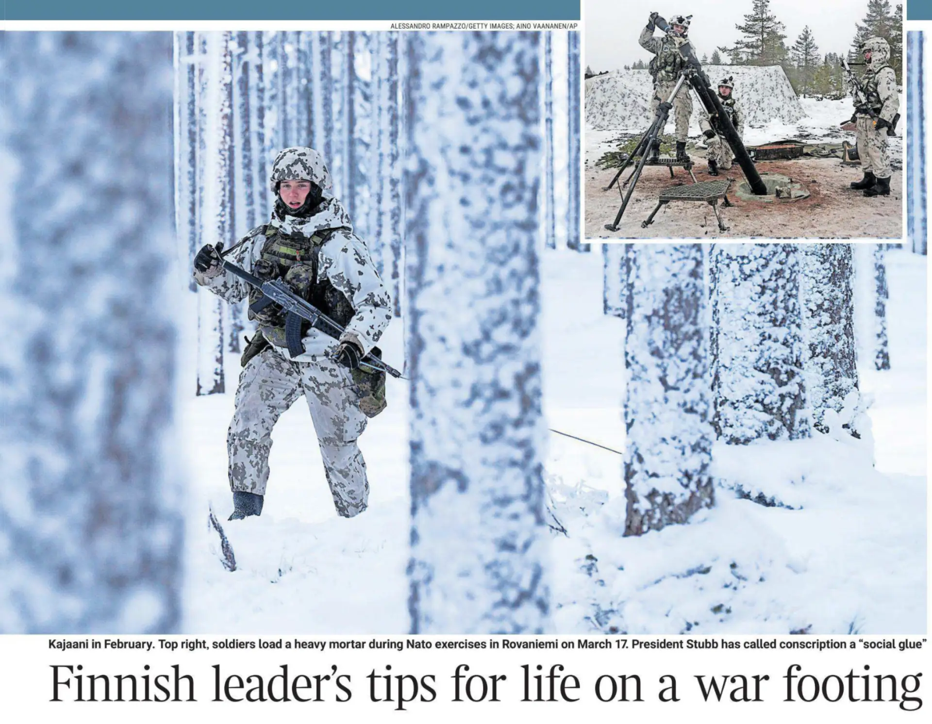 Сегодня на страницах The Times президент Финляндии Александр Стубб дает британцам «советы по выживанию в военных условиях». Как будто он хоть раз в них оказывался!