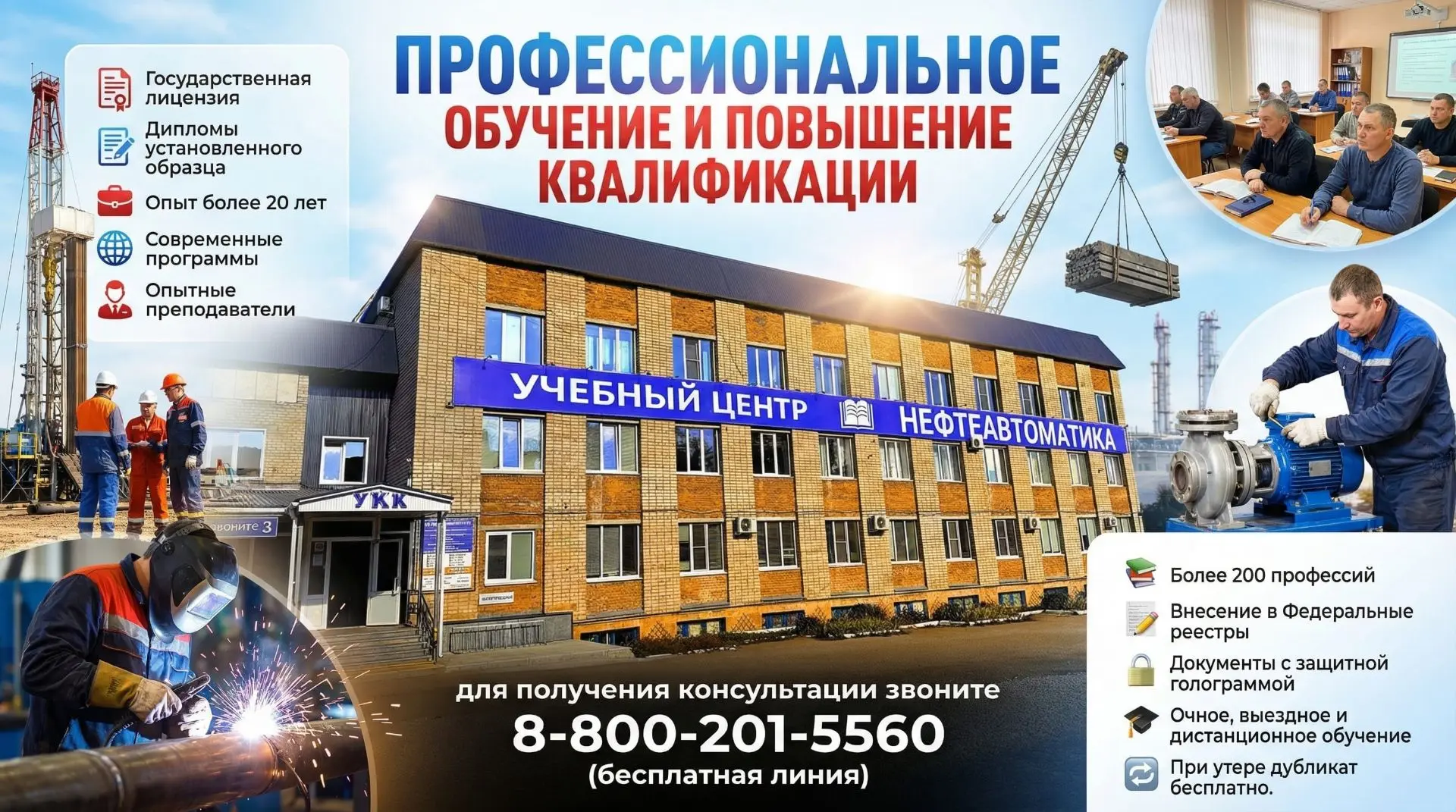 Учебный центр «Нефтеавтоматика» - УКК, г. Лениногорск, ул. Агадуллина, дом 2, корпус 3, проводит обучение рабочим профессиям, оказанию первой помощи, применению СИЗ, охране труда, пожарной безопасности.