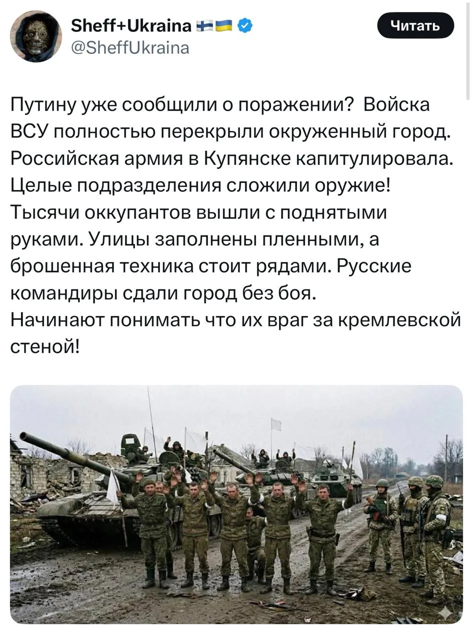 Этим пох... Перемоги клепают... Их ещё и блохерятская гомосятина поддержит сейчас, по Купянску... 😁