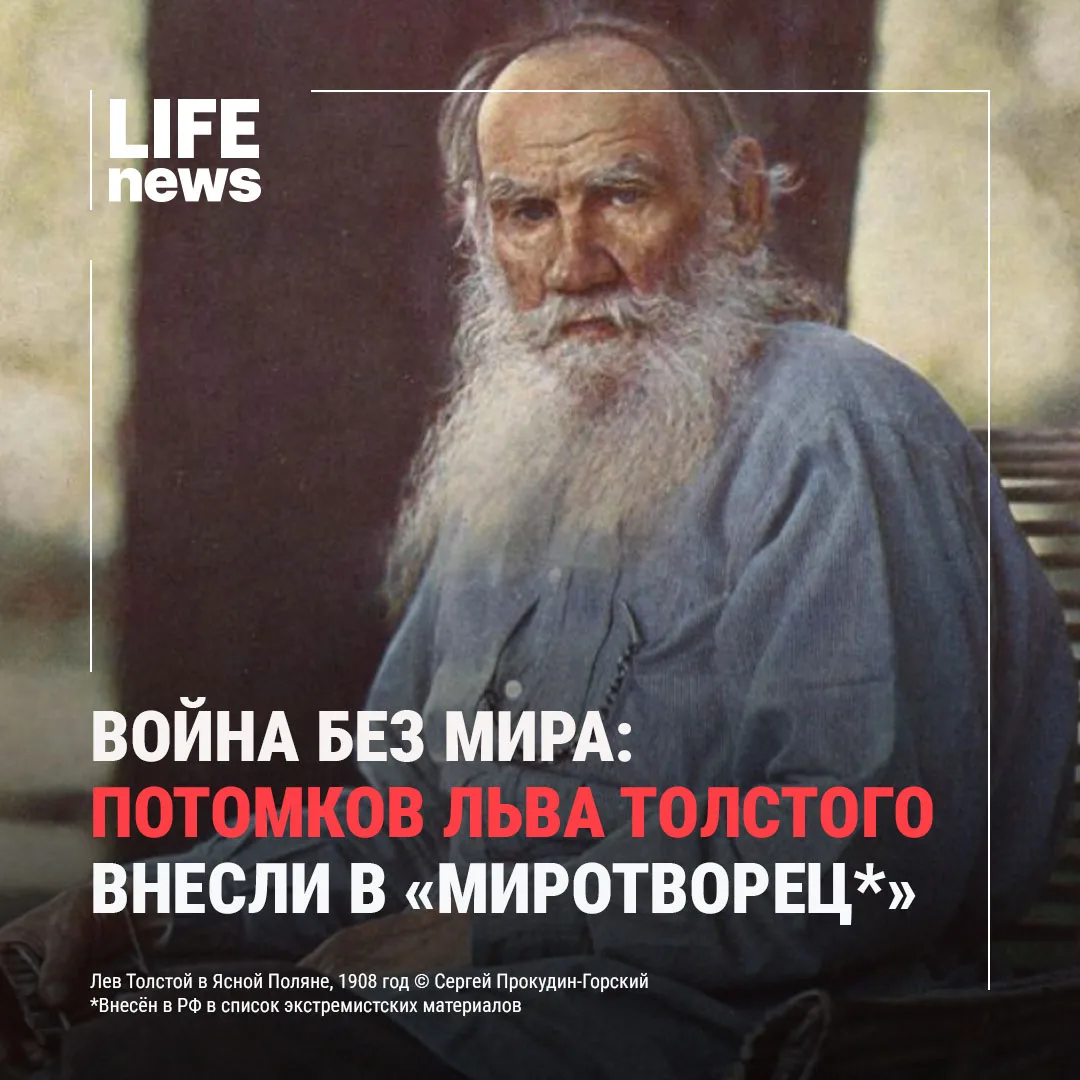 В «Миротворец*» попали прапраправнуки великого писателя — 41-летняя Анастасия и 27-летний Иван Толстые (брат и сестра), а также жена и мать Ивана. Жена Ивана — 27-летняя актриса Стася Толстая, а его мать — 53-летняя Екатерина Толстая, директор заповедника «Музей-усадьба «Ясная Поляна».