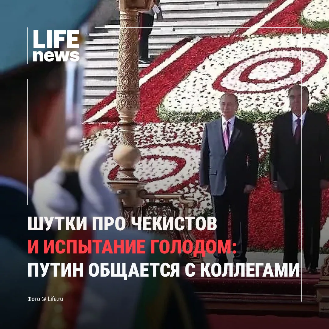 «Он (Рахмон) меня со вчерашнего вечера морит голодом. Я говорю: «Зачем моришь голодом?». (Он сказал): «Завтра будем вместе, все соберёмся». Я говорю: «Ну ладно, хорошо», – сказал с улыбкой Путин.