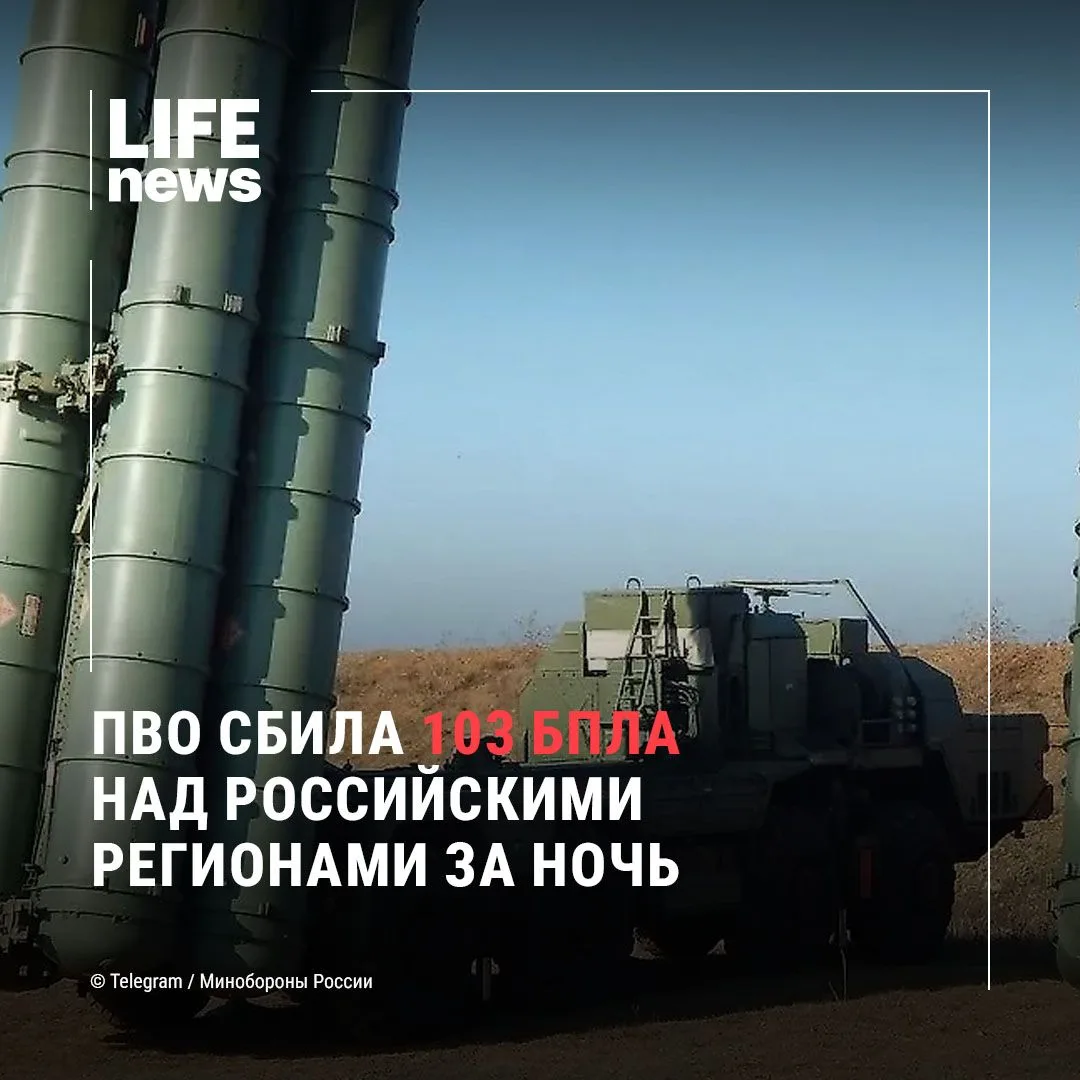 Силы ПВО за минувшую ночь отразили масштабную атаку украинских беспилотников. По данным Минобороны, всего было уничтожено 103 дрона над российскими регионами.