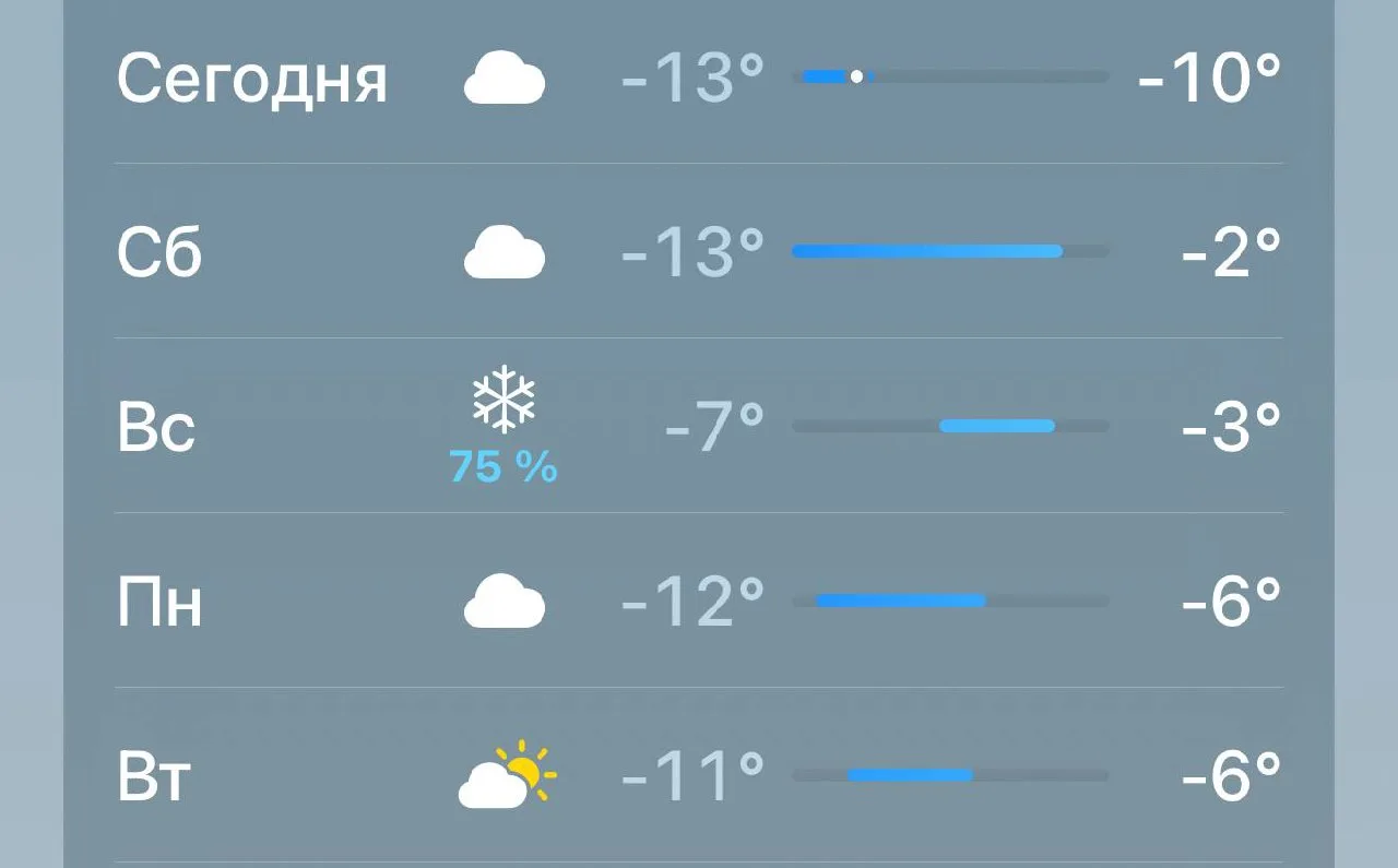Уже завтра днём температура повысится до −1…−3 градусов.