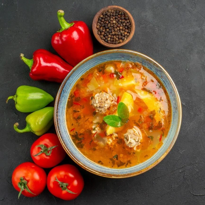 Обед. Суп-гуляш с индейкой и морковный салатик с салатом айсберг и рукколой