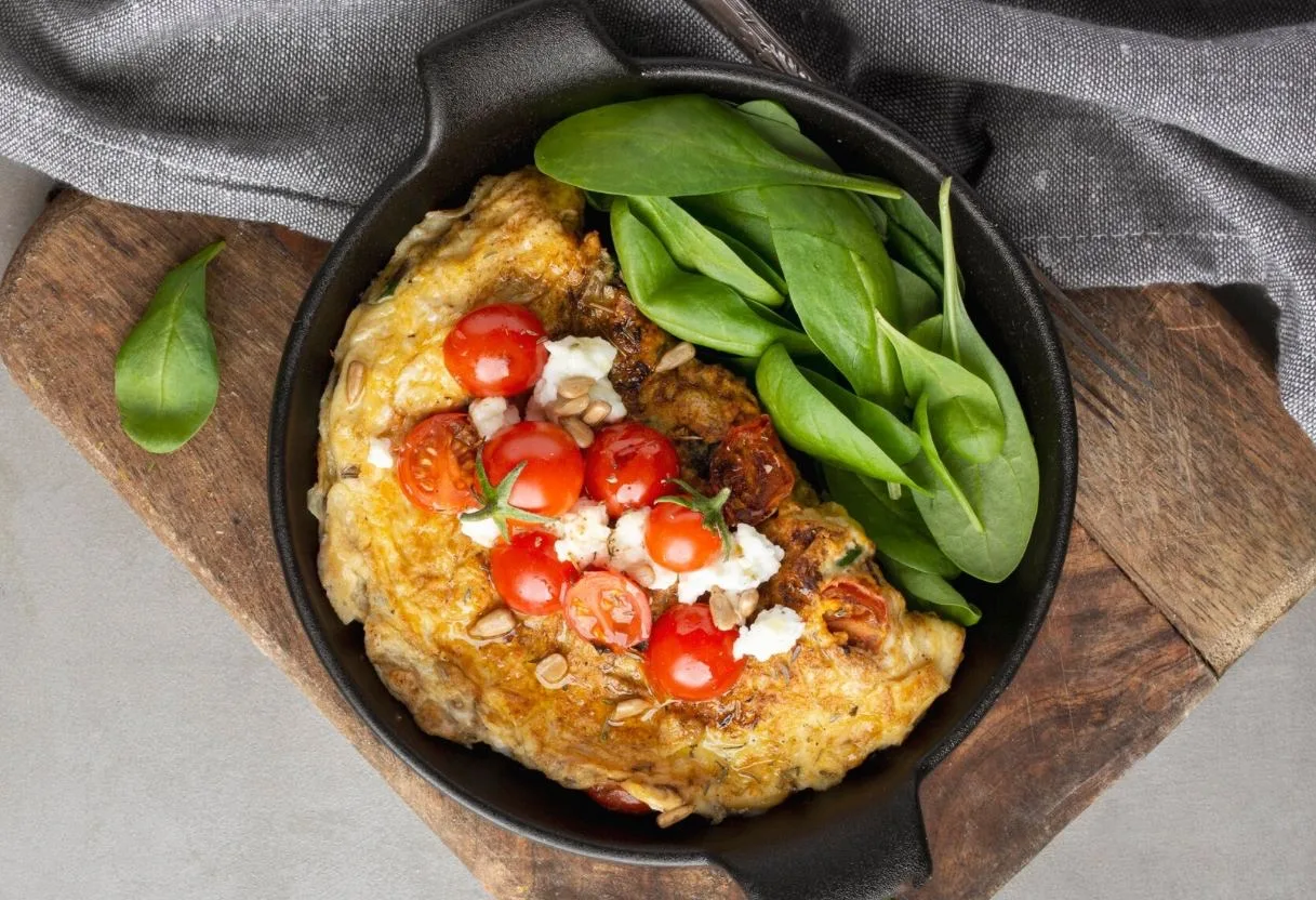 Завтрак. Овсяноблин с тофу, томатами и миксом зелени