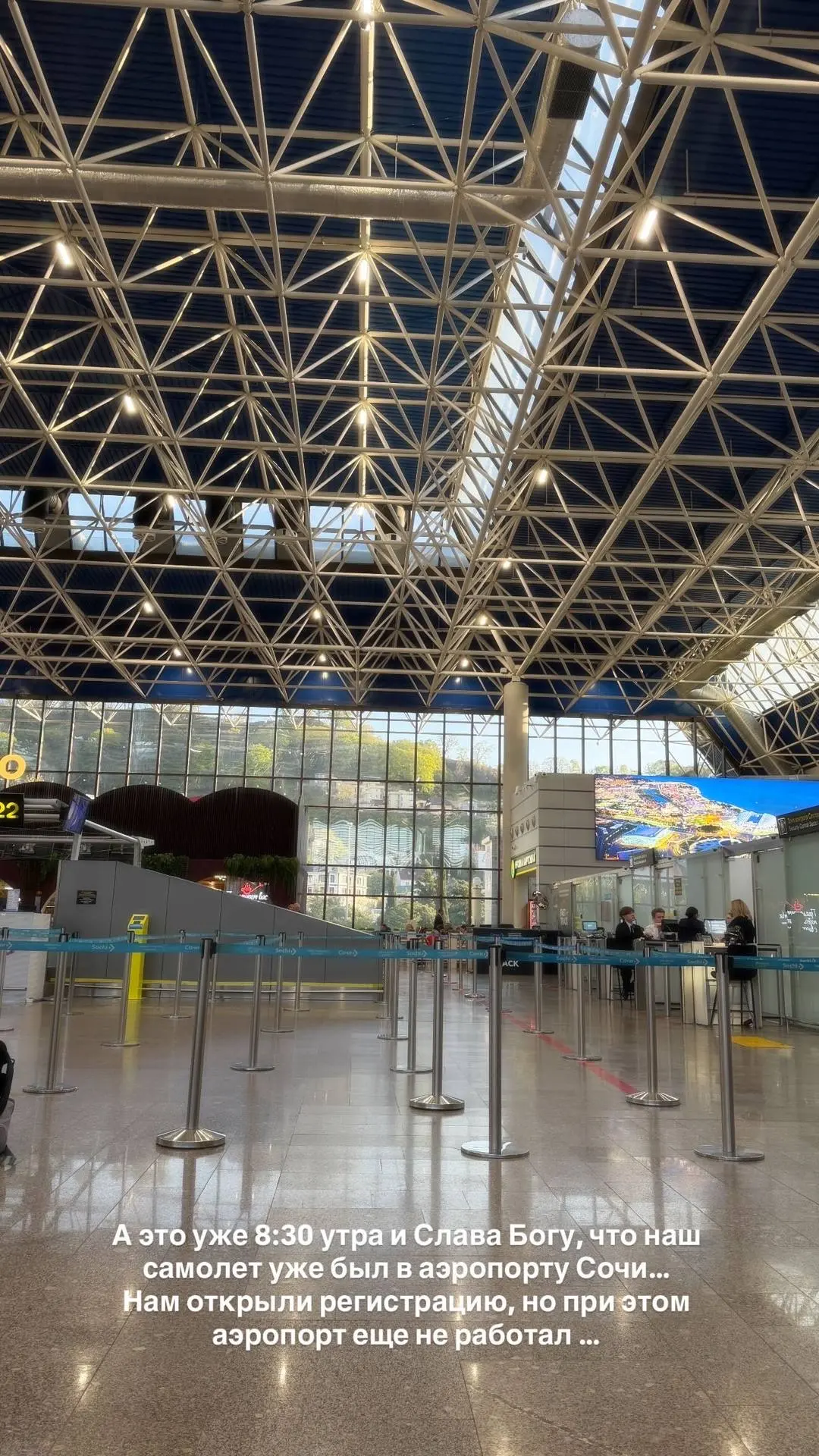 Вы знаете нам повезло, что наш самолет уже стоял в аэропорту, поэтому до возобновления его работы, регистрацию открыли только два рейса. Сочи - Астрахань и Сочи - Екатеринбург, но все же, после регистрации мы снова ждали