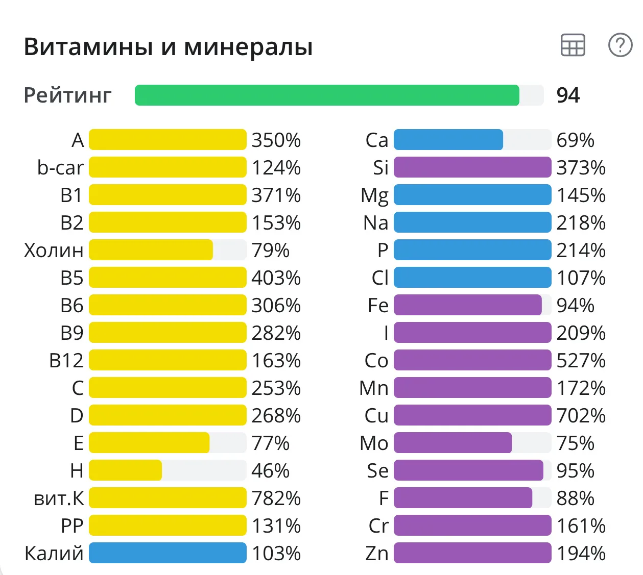 • Таблица с расчетом витаминов, минералов и КБЖУ на каждый день. - Вкусные рецепты из простых и доступных продуктов питания