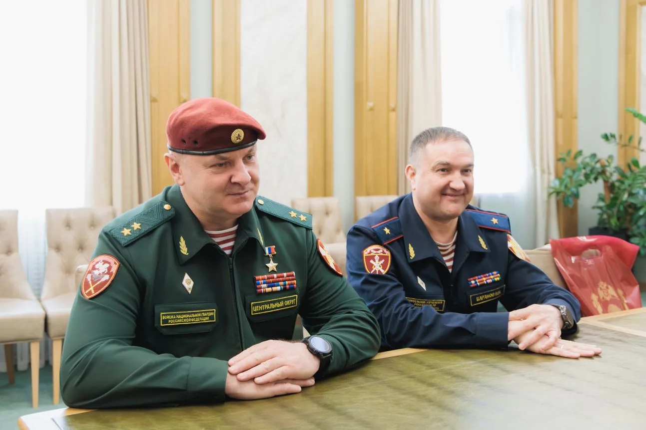 Встретился с Героем России, генерал-лейтенантом Вячеславом Пытковым — первым заместителем командующего Центральным округом войск национальной гвардии Российской Федерации и начальником территориального управления Росгвардии генерал-майором полиции Игорем Барановым. В это воскресенье ведомство отмечает 10 лет со дня основания. Поздравил Вячеслава Владимировича и его сослуживцев.