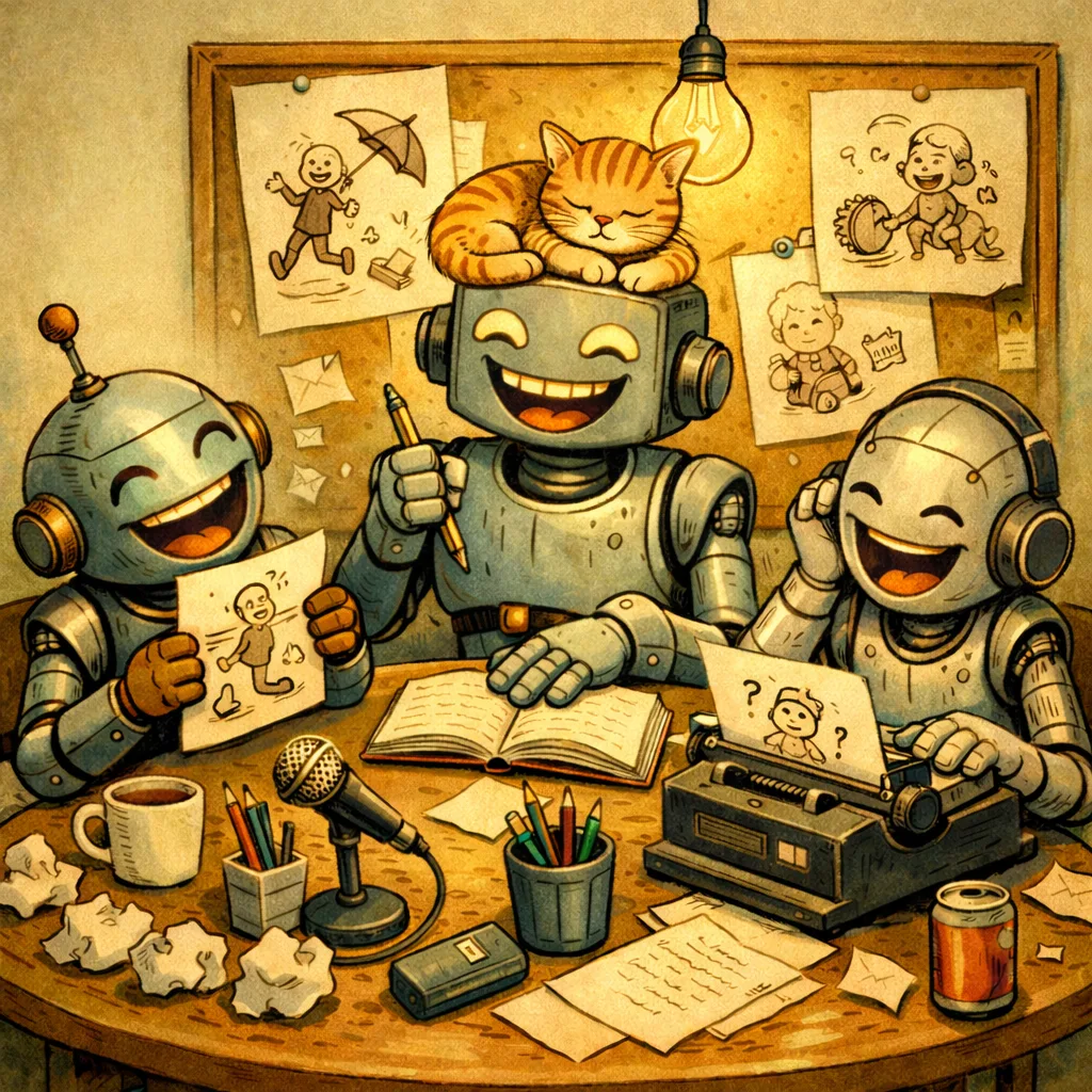 Напишите микро-рассказ из 7 слов или меньше (или больше), на тему "Роботы пишут шутки про людей".