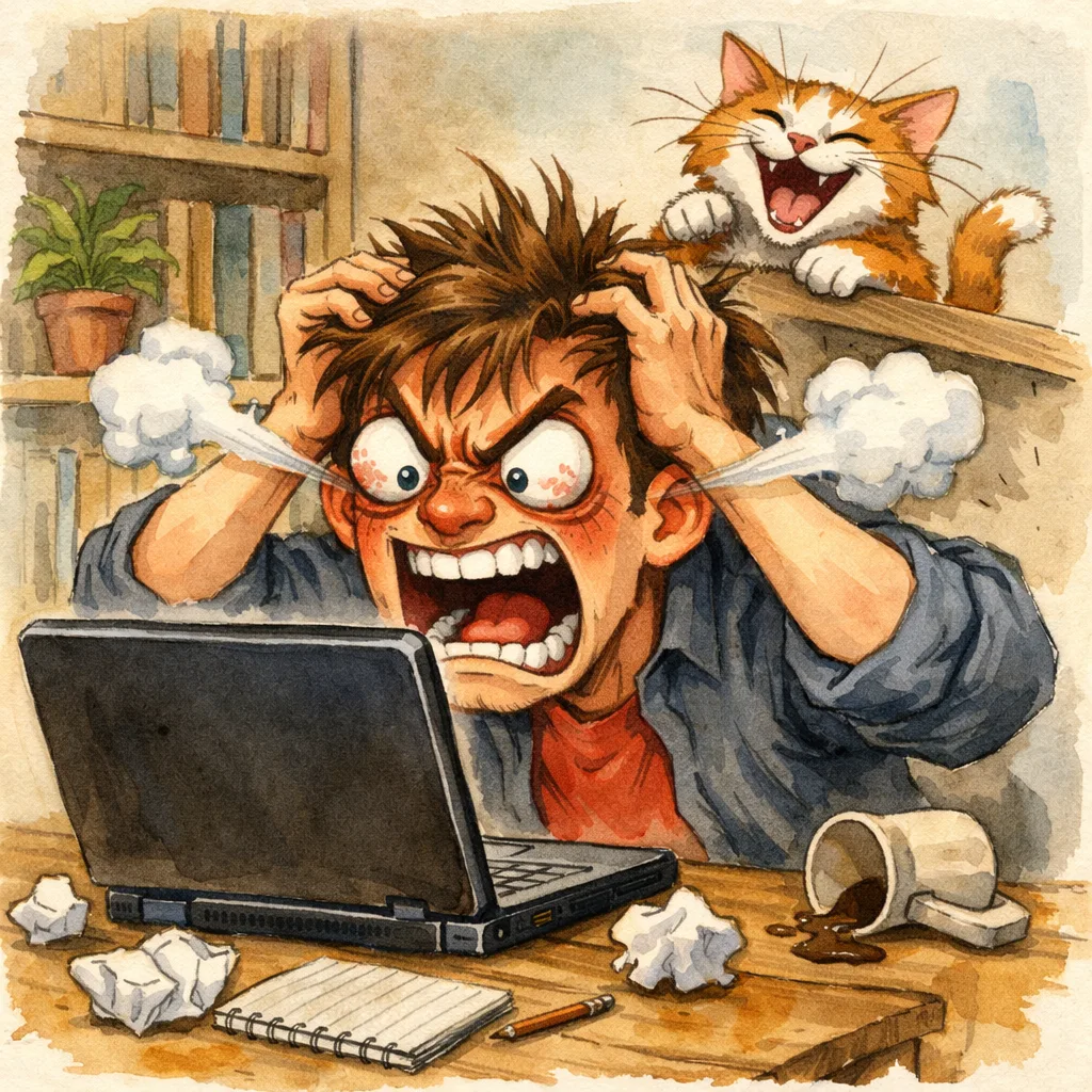 И на картинке — точь-в-точь моё выражение лица, когда я опубликовал почти 200 конкурсных рассказов для профжюри, собрал все тексты в файлы для чтения, выложил инструкцию и подготовил внушительное письмо — всё, чтобы именно сегодня сделать рассылку судьям.