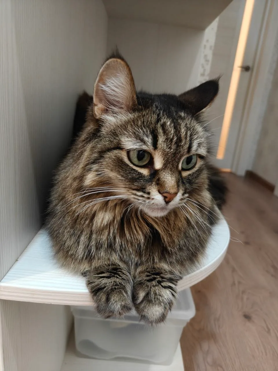 А кошечка — красивая, пушистая, с талантом устраиваться где-нибудь максимально уютно и заразительно. Хоть сам рядом сворачивайся клубочком. Впрочем, этот навык прокачан у всех котиков без исключения. И у пёсиков тоже.