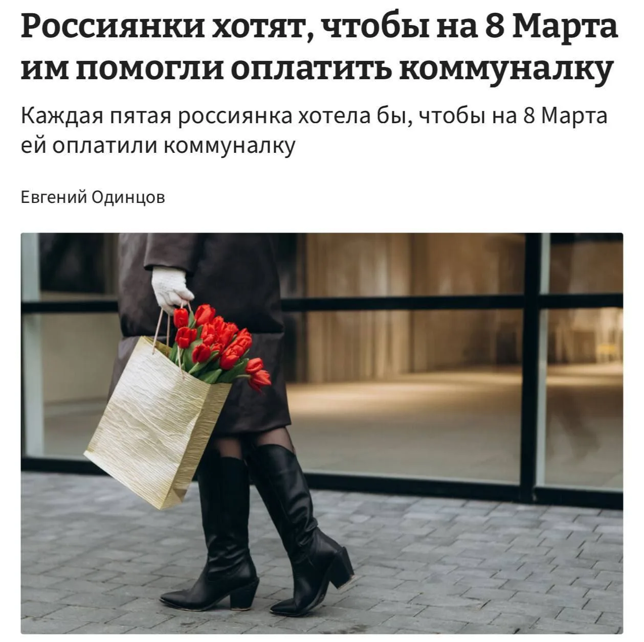 Каждая пятая россиянка хочет, чтобы ей оплатили коммуналку как подарок на 8 мара, показали опросы
