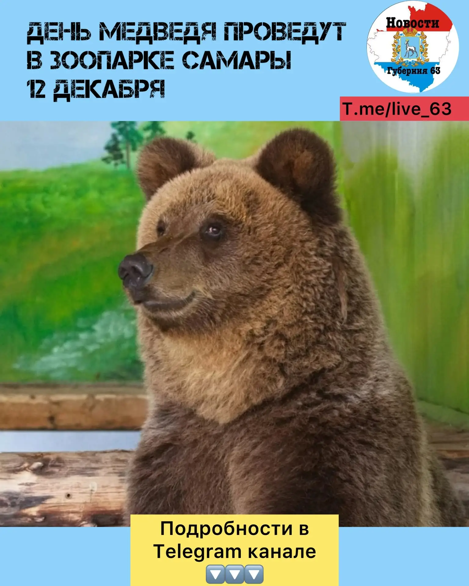 В самарском зоопарке 12 декабря проведут День медведя. В нашем зоопарке живет очаровательный и общительный медведь Умка, и в этот день посетители смогут познакомиться с ним поближе. Мероприятие начнется в 13.00.