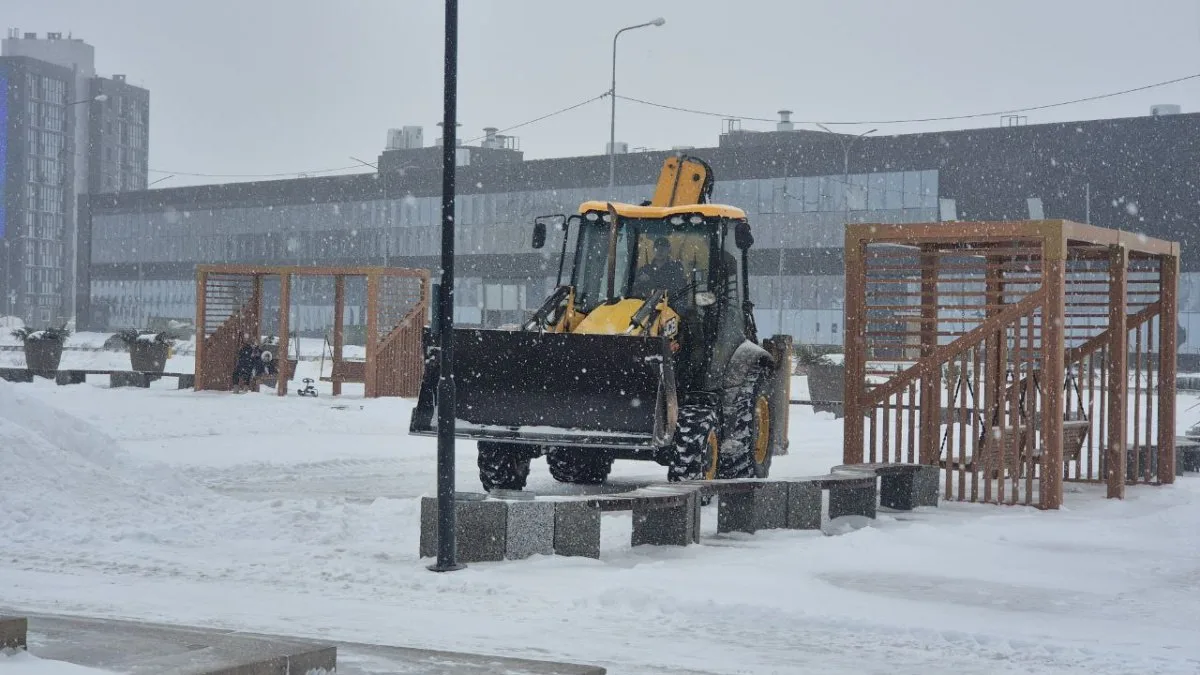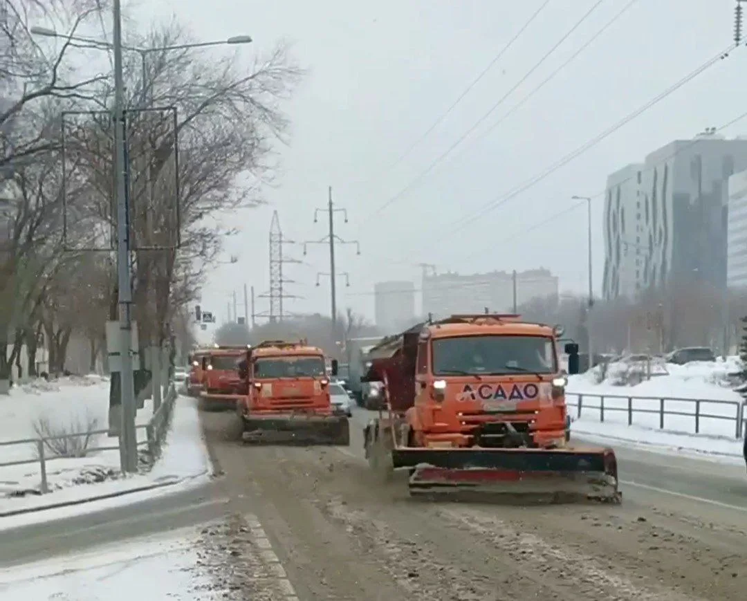 Из-за снегопада и низовой метели сегодня на трассы вышли 420 машин, из них 149 - комбинированные дорожные машины. Спецтехника патрулирует сеть, чистит проезжую часть и обрабатывает покрытие противогололедными материалами.