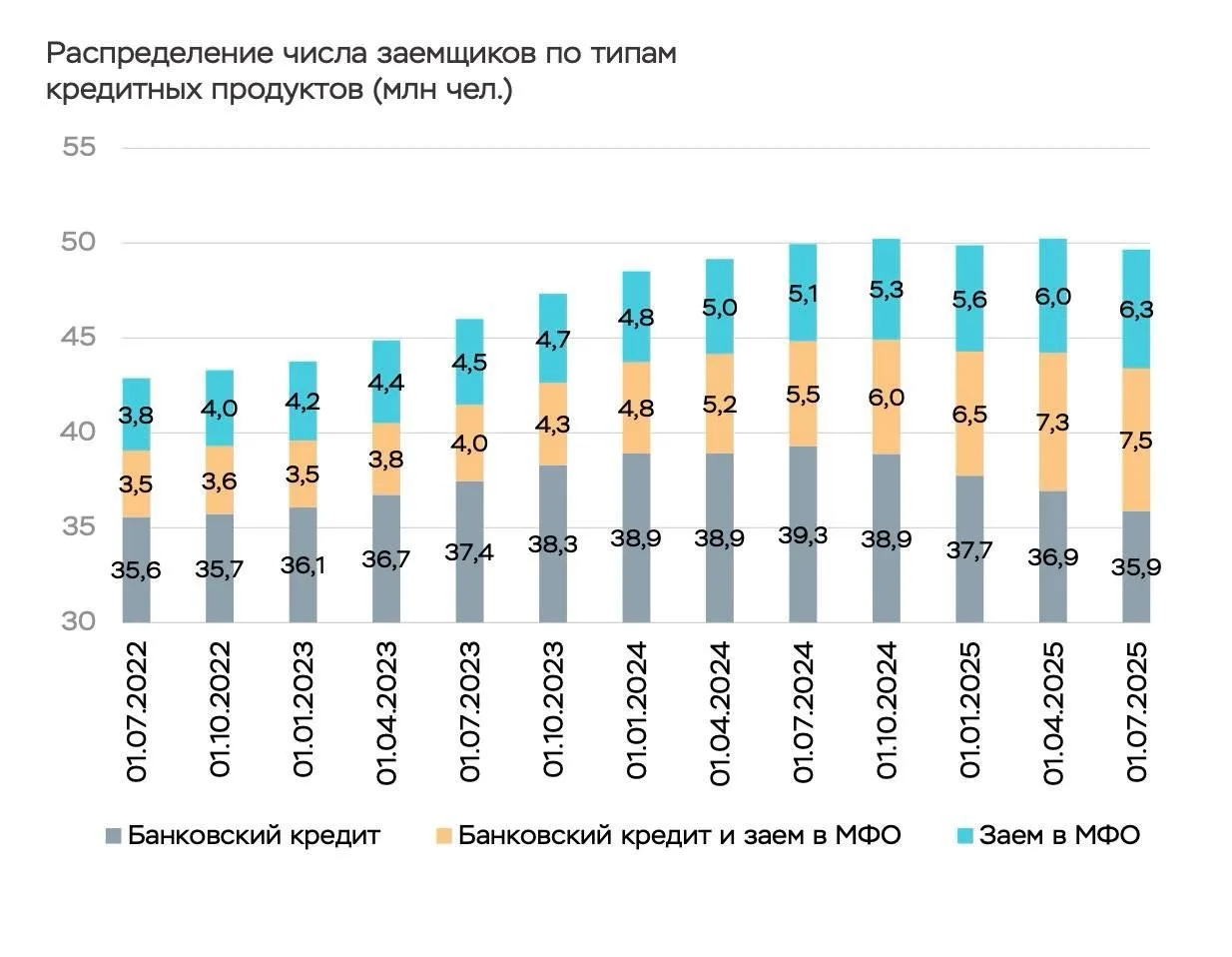 С 2022 года число россиян с кредитами и займами выросло до 49,7 миллионов человек - прирост составил почти 7 миллионов заемщиков