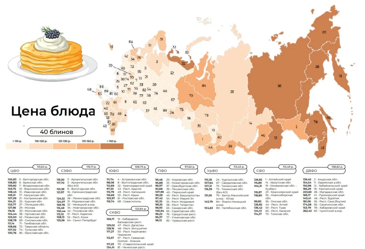 🥞 Самарская область вошла в топ-10 регионов России по наименьшей стоимости набора продуктов для приготовления блинов - согласно индексу от Центра стратегических разработок, приготовить 40 блинов в регионе можно за 96,93 рублей