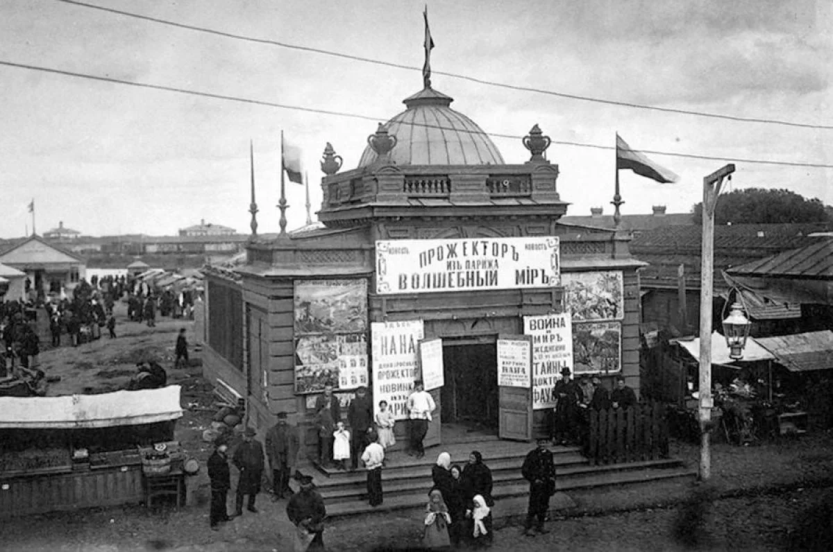 В 1896 году на Всероссийской промышленной выставке впервые показали «синематограф» братьев Люмьер. В числе зрителей был молодой журналист Алексей Пешков — будущий великий писатель Максим Горький. Он описал свои впечатления в газете «Нижегородский листок». Пугающее, но удивительное зрелище сразу полюбилось публике.
