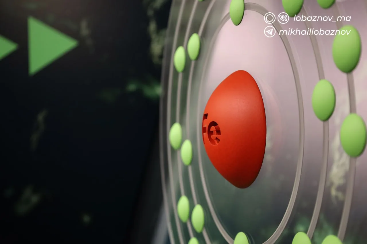 Среди экспонатов – объёмная модель атома, интерактивный макет Земли, образцы руд и минералов, а также фрагменты настоящих метеоритов, которые можно изучить под микроскопом. Всё это превращает знакомый со школьных уроков элемент в увлекательную историю о происхождении планеты, развитии цивилизации и современных технологиях.