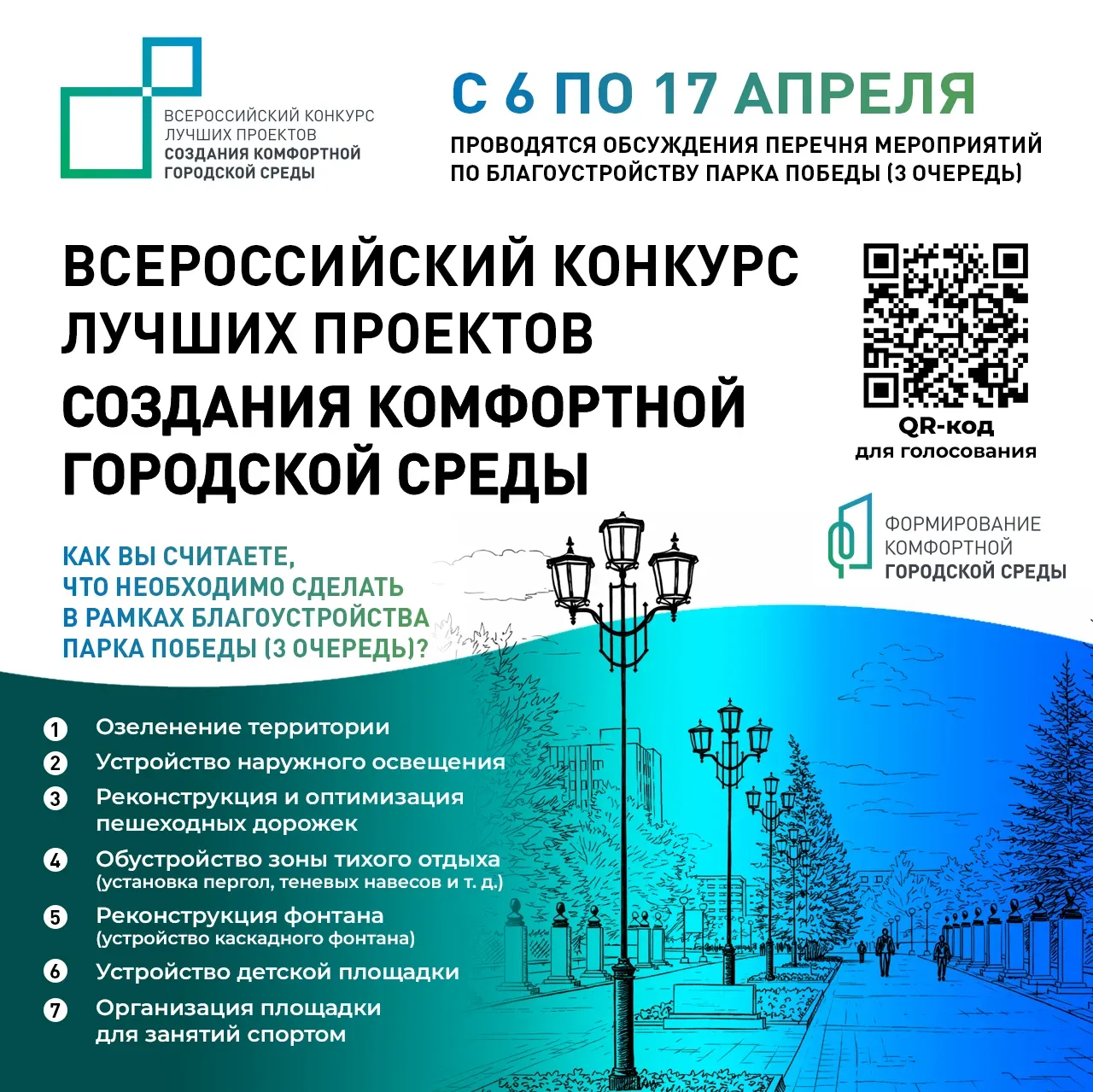 Внешний облик наших парков и скверов — это всегда народный выбор, и нам важно мнение каждого. Обсуждение проходит в онлайн-формате и продлится до 17 апреля. Принять участие может каждый. Переходите по ссылке ниже и выбирайте, что необходимо сделать в рамках 3-й очереди: