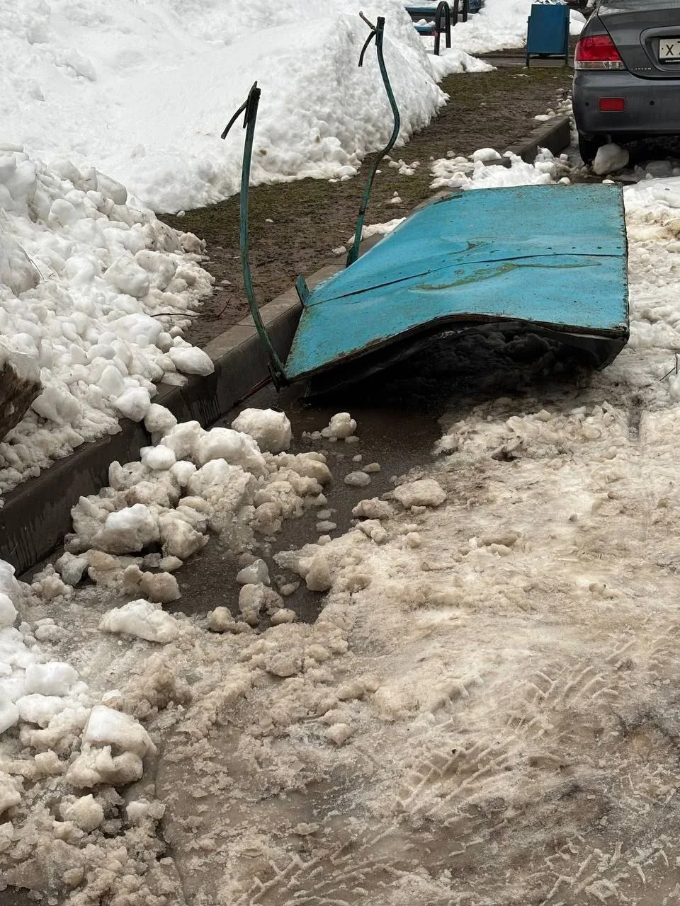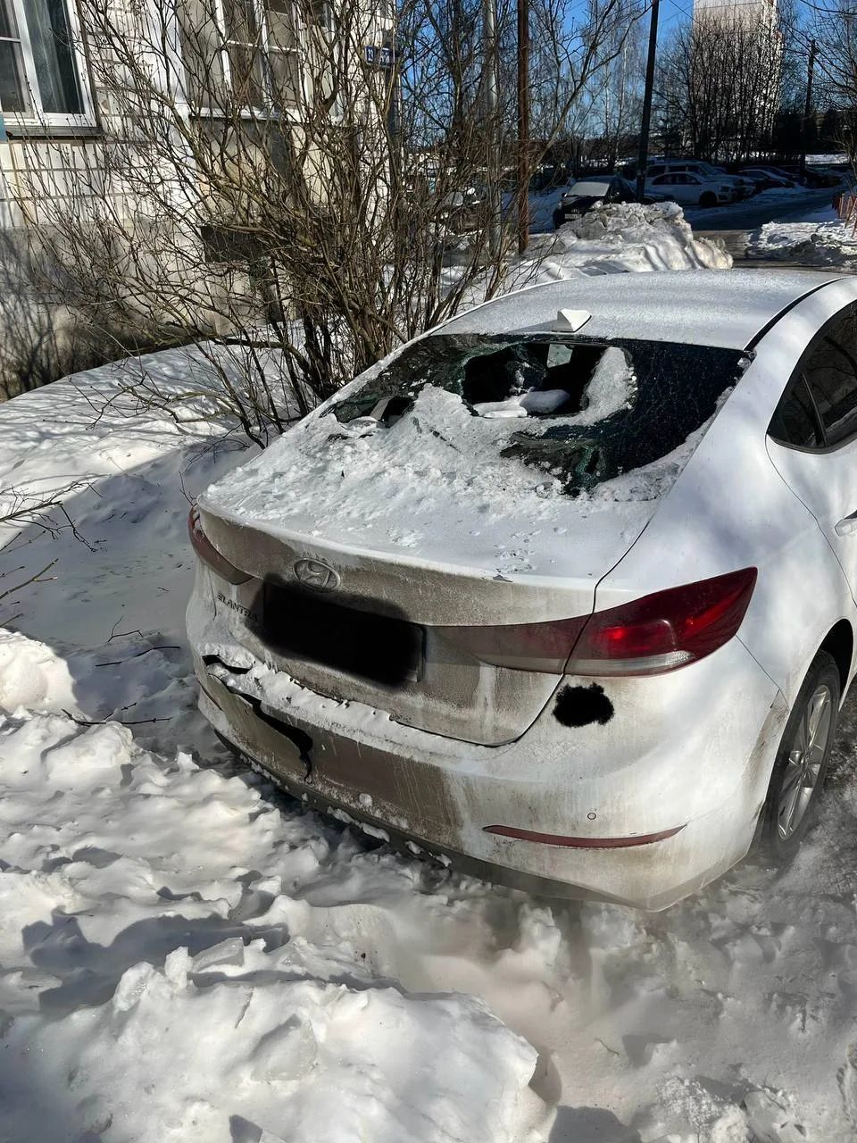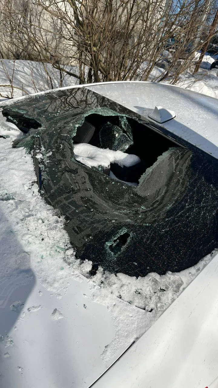 Подписчики оставили машину возле дома ул.Чайковского 23, а утром вчера обнаружили, что на машину упала огромная глыба снега, которая разбила заднее стекло, багажник и бампер.