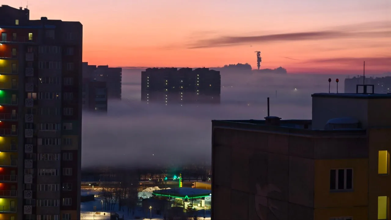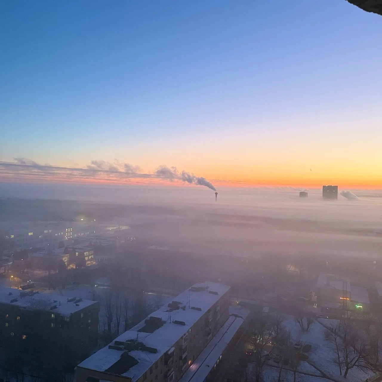 Сегодня утром в нашем регионе установилась необычная погода. В результате на определенной высоте образовалась дымка.